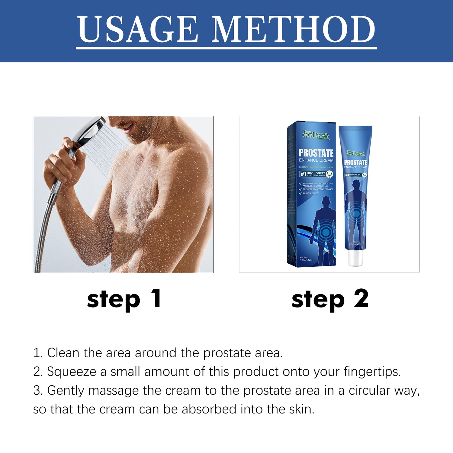 Our Prostate Enhance Cream contains saffron, glycerin, olive oil. It can promote hormone secretion, improve overall prostate health, alleviate urinary frequency, eliminate abdominal pain, and promote healthy urinary function, balances the magnetic field in the body promoting better sleep, reducingnightly urination, and insomnia, helps with healthy prostate function, better urine flow, and reduces the urgency of going out, resolve sexual dysfunction and reignite your enthusiasm and confidence. Its application method is very simple: Clean the area around the prostate area. Squeeze a small amount of this product onto your fingertips. Gently massage the cream to the prostate area in a circular way, so that the cream can be absorbed into the skin. Improving overall prostate health, relieve urinary frequency, eliminate abdominal pain, promoting healthy urinary function, reduce nocturnal urination and insomnia.