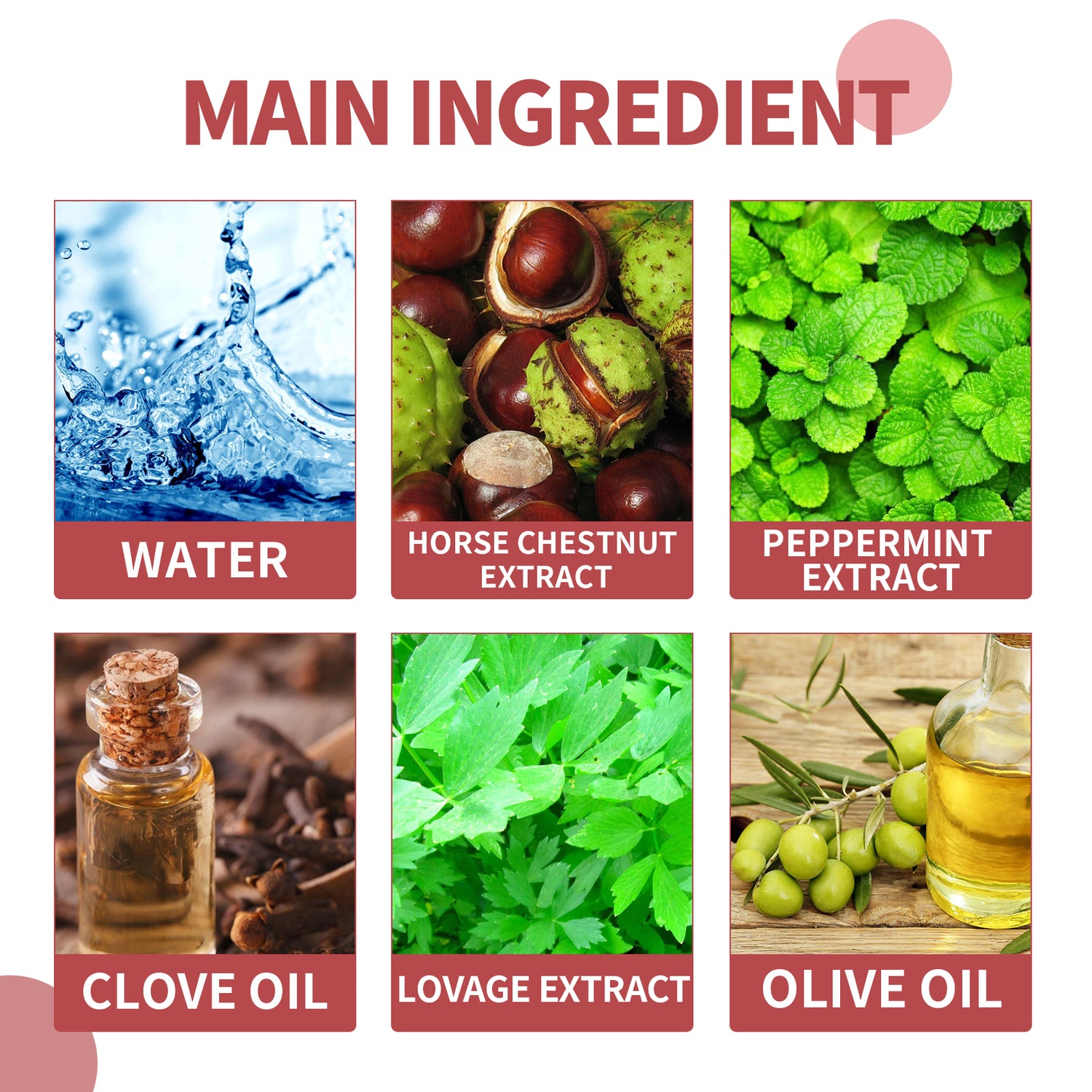 Our intravenous massage varicose spray contains buckeye extract, peppermint extract. It can relieve swelling and protruding veins and reduce pressure on varicose veins. Its use is simple: 1. Clean and dry the affected area. 2. Press the spray onto the skin. 3. Gently massage with your hands in circular motions until absorbed. 4. Insist on 2-3 times a day for better results. And can effectively eliminate varicose veins, relieve itching and pain.