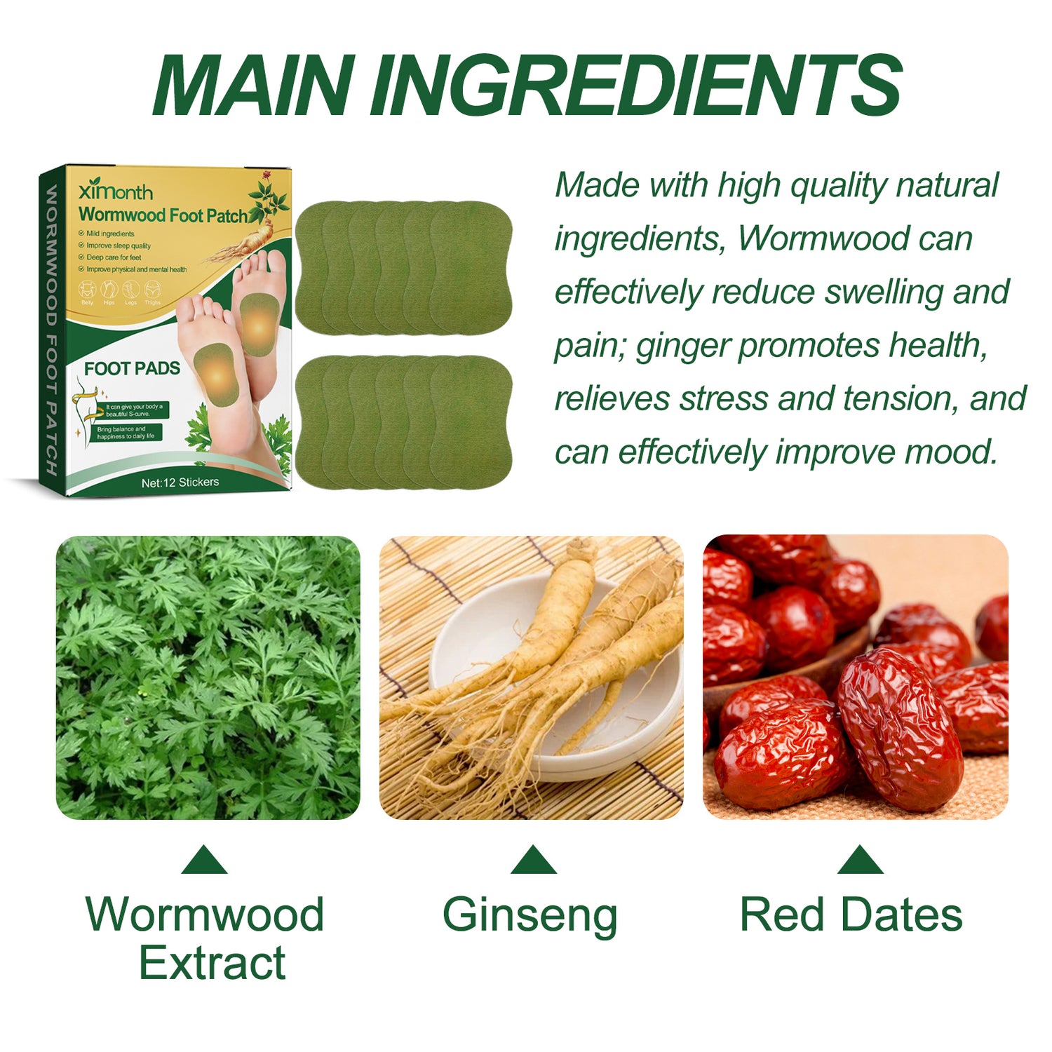 Our Wormwood Foot Patch contain wormwood extract, ginseng and red dates. It can promote blood circulation, effectively improve sleep quality, promote metabolism, continuous heating, relieve fatigue. Its use method is very simple: clean the sole skin and dry, take a piece of foot patch on the sole skin, stick about 6-8 hours and then tear off. Improve sleep quality after use, help relieve physical stress, prevent fatigue, and bring balance and health to daily life.