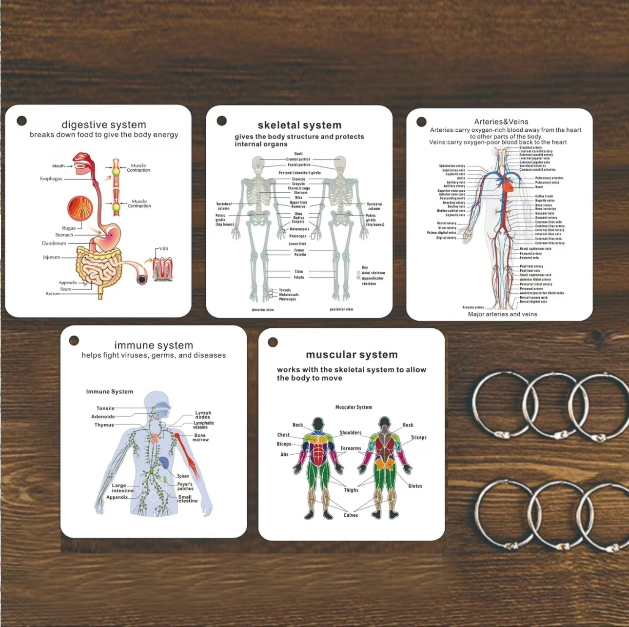 AnatoLearn Flash Cards – 21-Piece Human Anatomy Study Set with Hanging Ring
