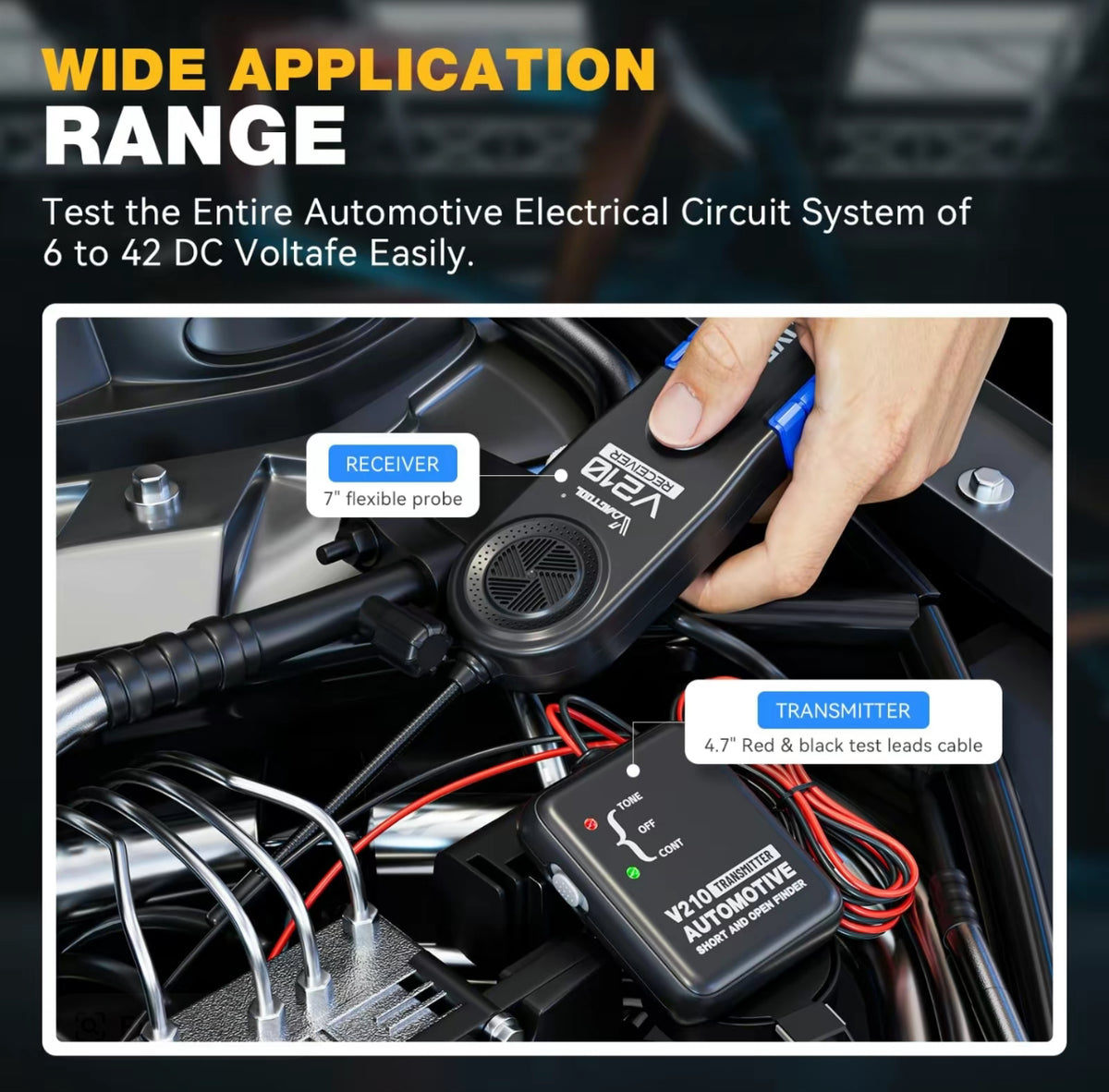 This compact, easy-to-use tool is designed for DIYers, technicians, and mechanics to quickly trace wires, detect open circuits, and locate shorts in any 6–42V DC system. Whether you’re working on a car, truck, boat, RV, or tractor, the CircuitHunt V210 helps you pinpoint electrical issues with confidence and accuracy.