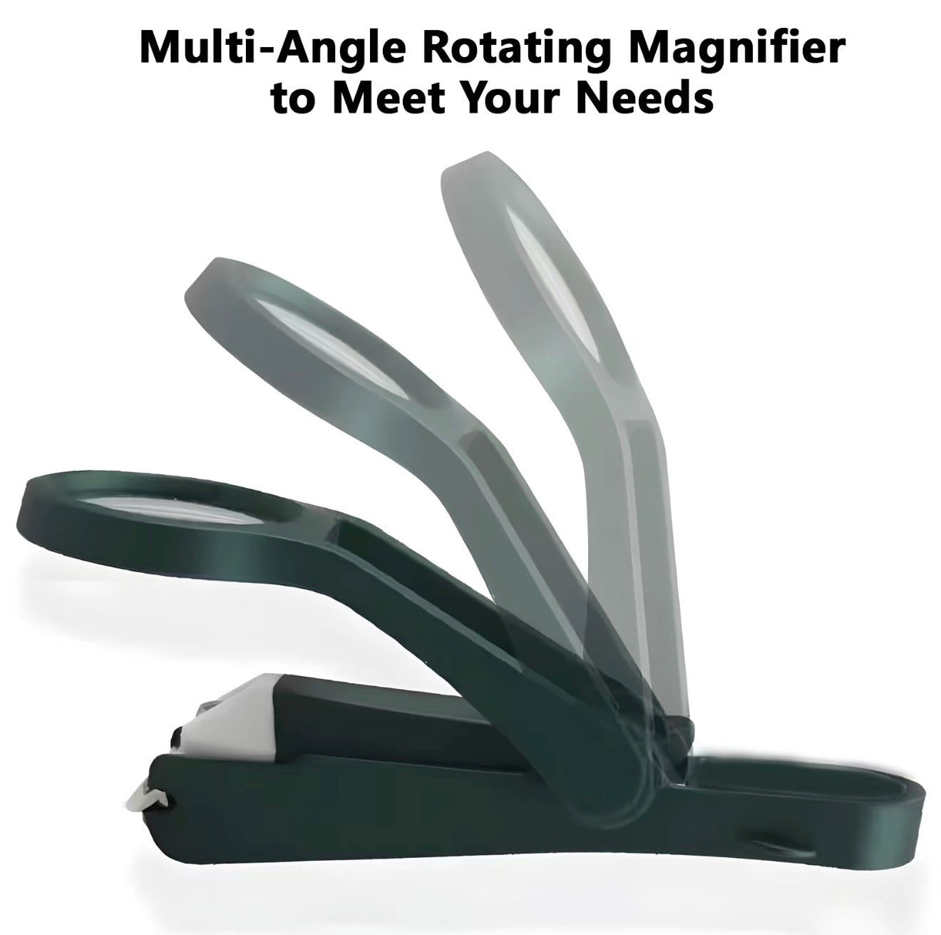The 3X magnifying glass provides a clear, enlarged view of your nails, allowing for precise trimming. The lens is adjustable and folds away when not in use.