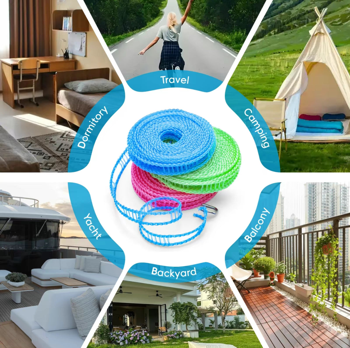- Adjustable 5m Length: Extend up to 16.4 feet or shorten as needed—ideal for balconies, bathrooms, campsites, or hotel stays.