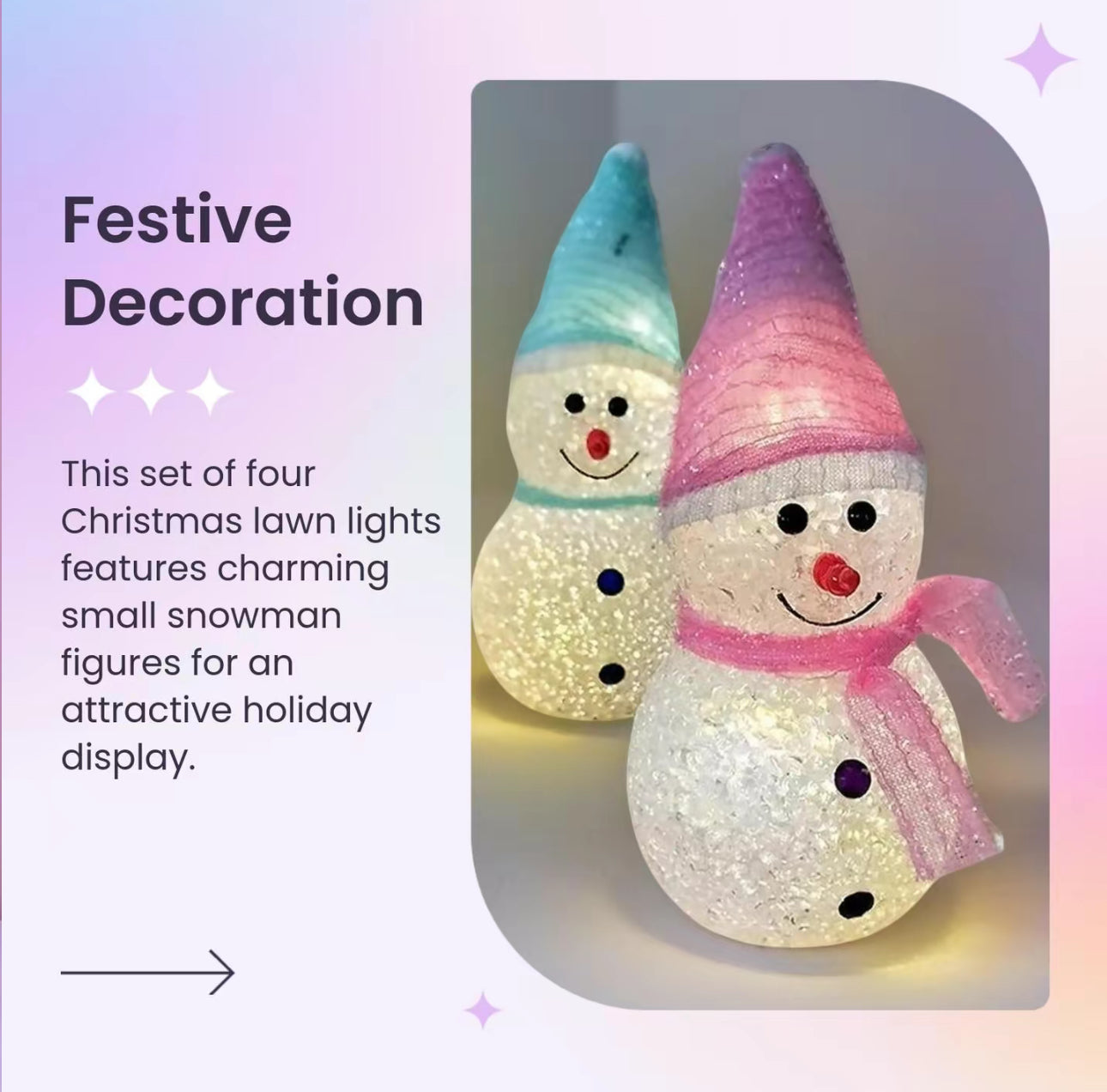 GlowFest Christmas Lawn Lights – 4pcs Snowman LED Outdoor Decorations with Battery-Powered Illuminated Display