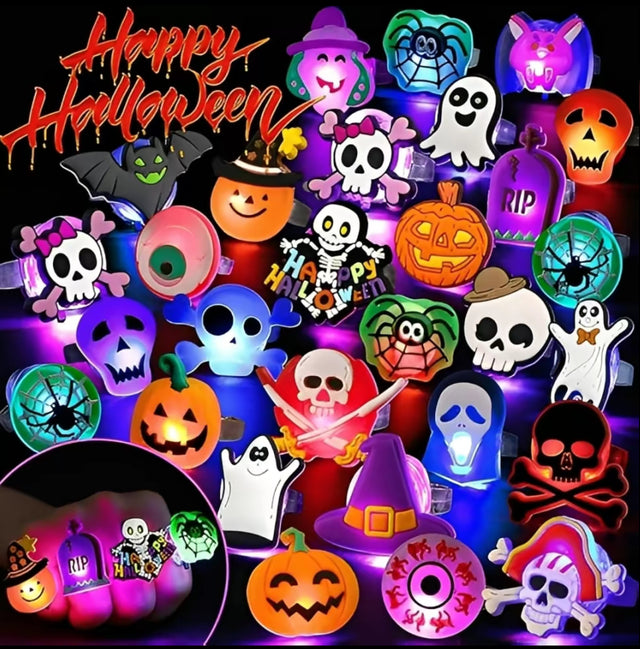 Make this Halloween unforgettable with the GlowFright Halloween Rings — a fun and festive 50-piece LED ring set featuring glowing pumpkins, skulls, and spooky characters! Perfect for kids' parties, trick-or-treat bags, photo ops, classroom giveaways, and holiday décor, these colorful rings are a must-have accessory for adding extra magic to your celebration.