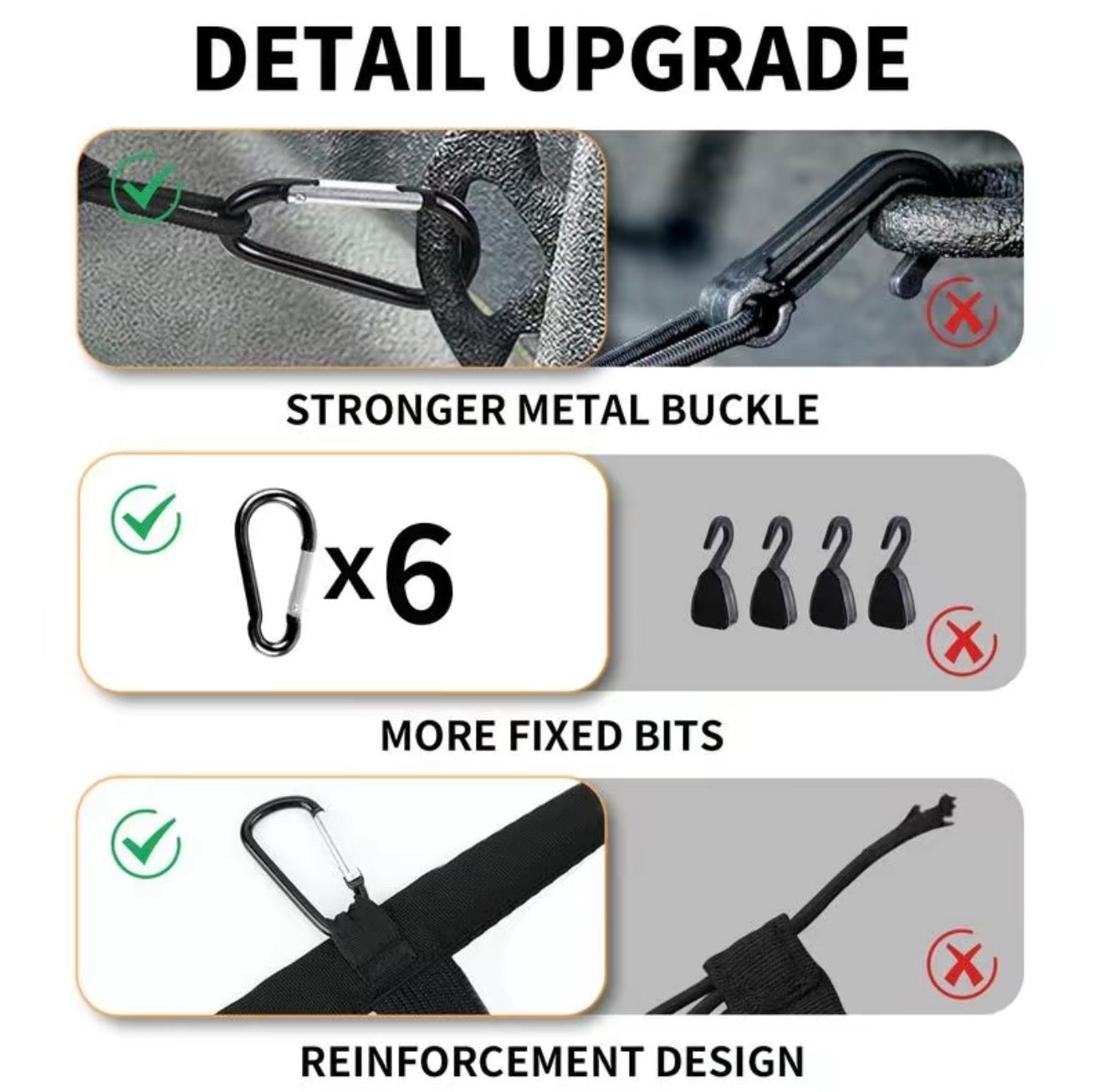 • Attachment: 6 metal carabiners included