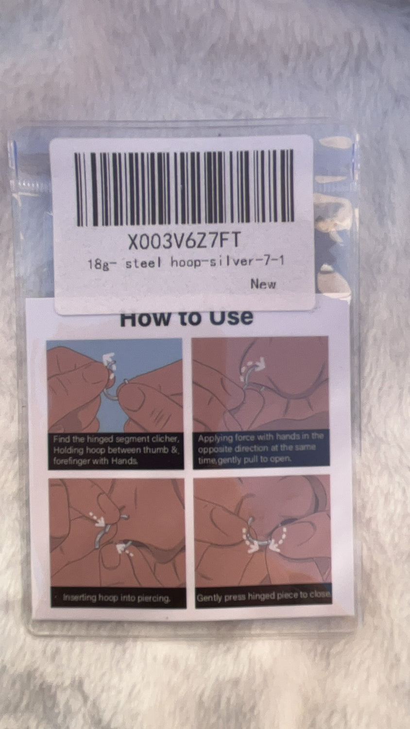 Aro de acero de 18 g, color plata, 7-1