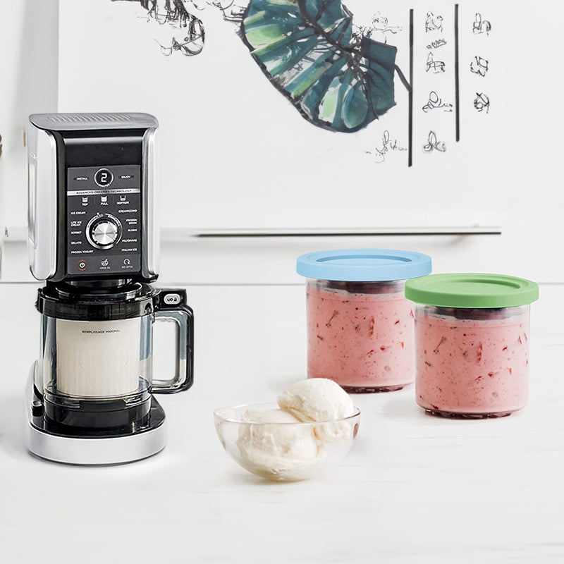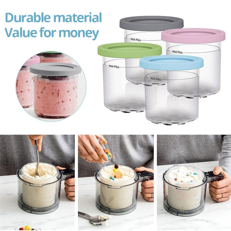 Paquete de 4 vasos con tapas antigoteo, juego de recipientes para helado cremoso, compatibles con las series Ninja NC299AM y C300s.