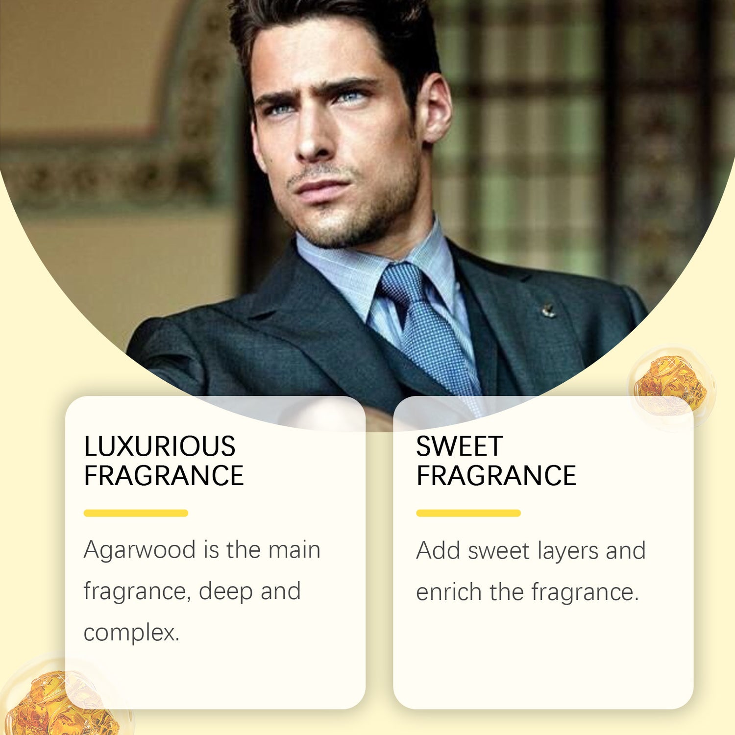 Nuestro Eau de Toilette Agarwood Luxury contiene extracto de madera de agar y extracto de vainilla. La madera de agar es la fragancia principal, rica y compleja. Añade una capa dulce para enriquecer el sabor. Su modo de uso es muy sencillo: rocíe suavemente el perfume en la muñeca, el cuello, detrás de las orejas y otros puntos de pulso, 1 o 2 veces por rociado, para lograr una óptima distribución del perfume. El perfume añade una rica sensación de calidez, haciendo la fragancia más rica y encantadora.