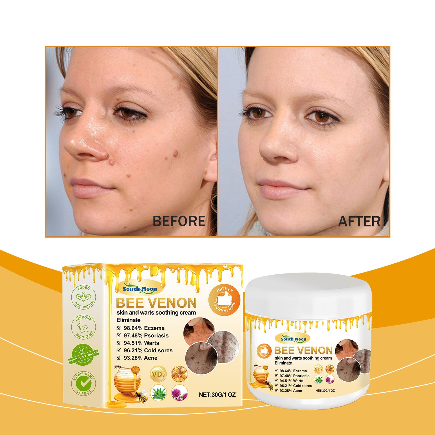 Nuestra crema para verrugas con veneno de abeja contiene extracto de hoja de esmeralda y vitamina D3. Ayuda a aclarar el tono de la piel y a restaurar su belleza y firmeza. Su uso es sencillo: limpie la piel. Aplique una cantidad adecuada de crema sobre la verruga, aplíquela uniformemente y espere a que se absorba. Además, puede inhibir la regeneración de las verrugas. Su uso prolongado mejora la uniformidad de la piel.