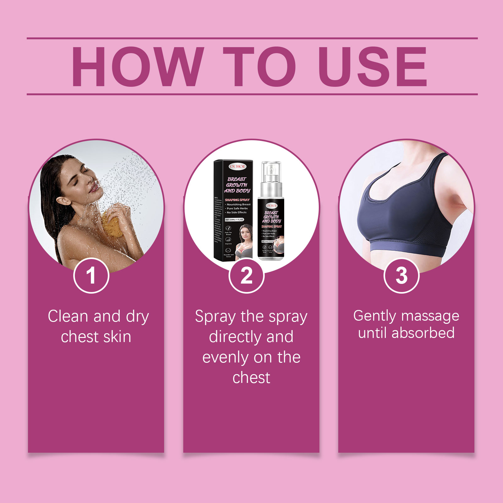 Spray de tratamiento para el pecho, suave, nutritivo, hidratante, reafirmante y humectante.