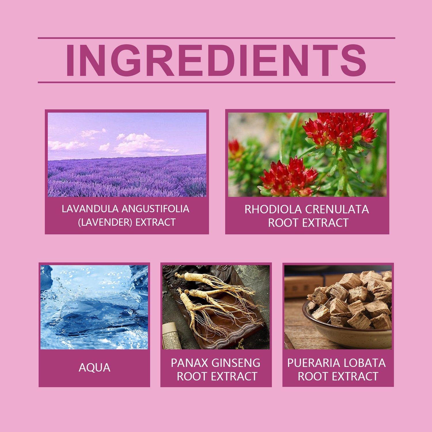 Nuestro espray para el pecho contiene extracto de Rhodiola Rosea y extracto de lavanda. Favorece la circulación sanguínea en el pecho y mejora la elasticidad y el brillo de la piel. Su aplicación es sencilla: con la piel limpia y seca del pecho, rocíe el espray directa y uniformemente sobre el pecho y masajee suavemente hasta su absorción. Penetra rápidamente en la piel para reafirmar y estilizar los senos.