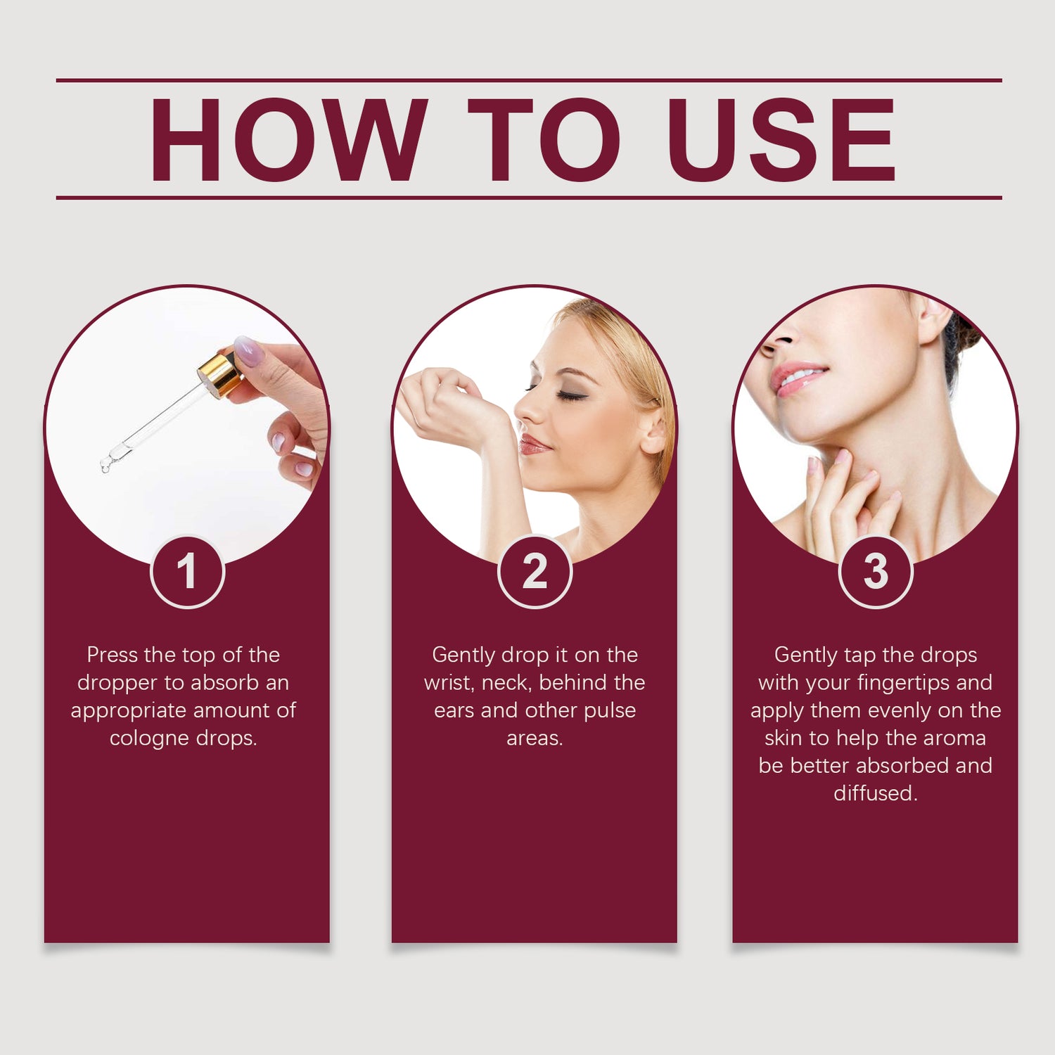 Nuestra colonia de dátiles contiene extracto de pachulí y extracto de flor de ylang-ylang. Desprende un encanto único. Su uso es muy sencillo: presione la parte superior del gotero para absorber la cantidad adecuada de agua de colonia, colóquela suavemente en la muñeca, el cuello, detrás de la oreja y otras zonas de la piel. Golpee suavemente la gota con las yemas de los dedos y extiéndala uniformemente sobre la piel para que el aroma se absorba y se distribuya mejor. Permanecerá fragante todo el día.