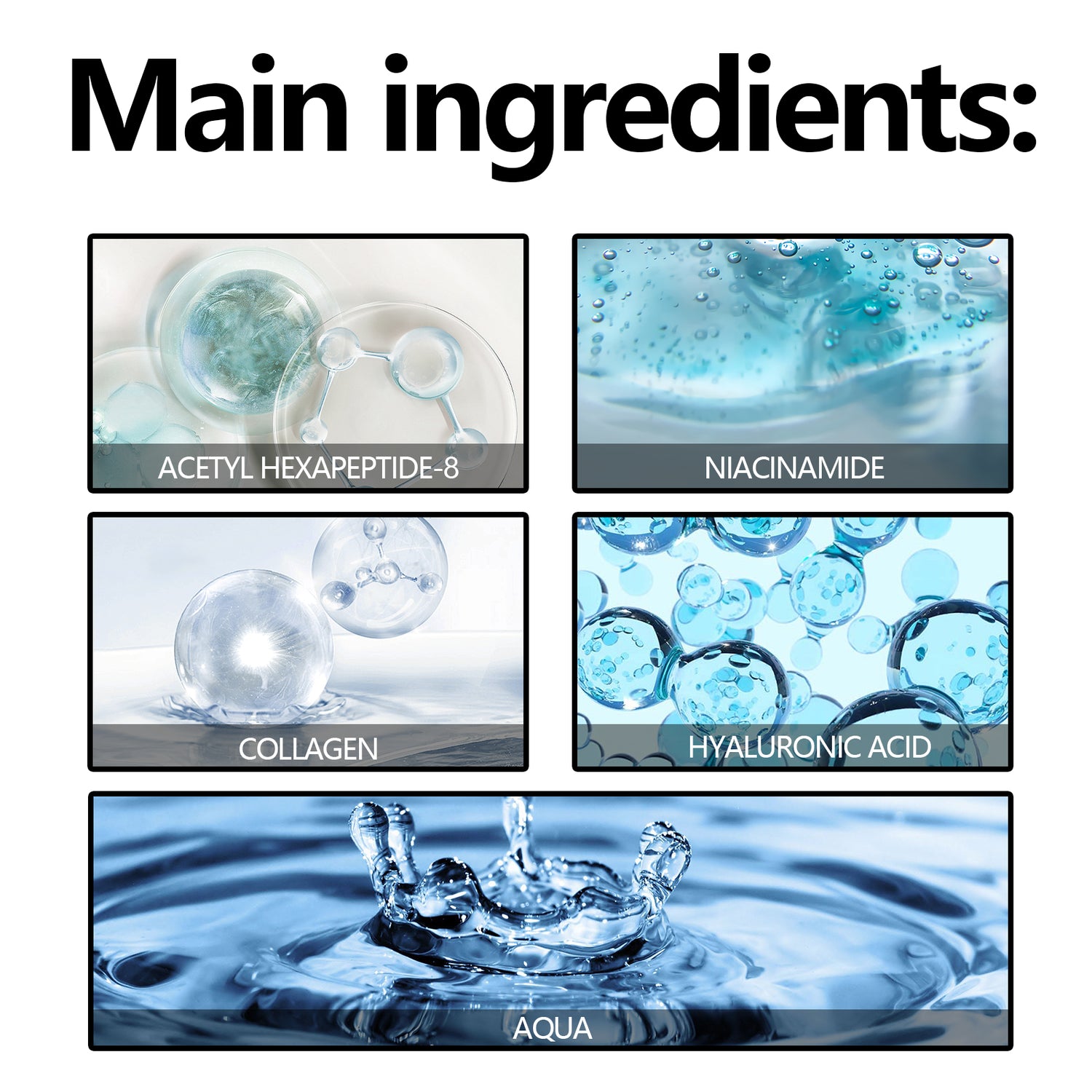 Nuestro Sérum Facial Botulínico Antiedad contiene acetil hexapéptido-8, niacinamida y colágeno. Ayuda a mejorar la firmeza y elasticidad de la piel, eliminar fácilmente arrugas y patas de gallo, recuperar la vitalidad juvenil, reducir las manchas oscuras, unificar el tono de la piel, aumentar la producción de colágeno, combatir eficazmente el envejecimiento, proteger la piel de la sequedad y mejorar su hidratación. Su método de aplicación es muy sencillo: use un gotero para tomar la cantidad adecuada de producto y aplicarlo uniformemente sobre la piel del rostro, masajeando suavemente hasta su completa absorción. Combate eficazmente el envejecimiento, reduce las líneas de expresión y arrugas, y reafirma la piel.