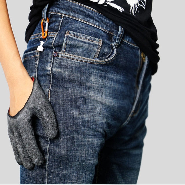 1. Fuerte protección: este guante está hecho de polietileno de alta densidad y revestimiento de látex, protege sus manos de cortes y raspaduras.