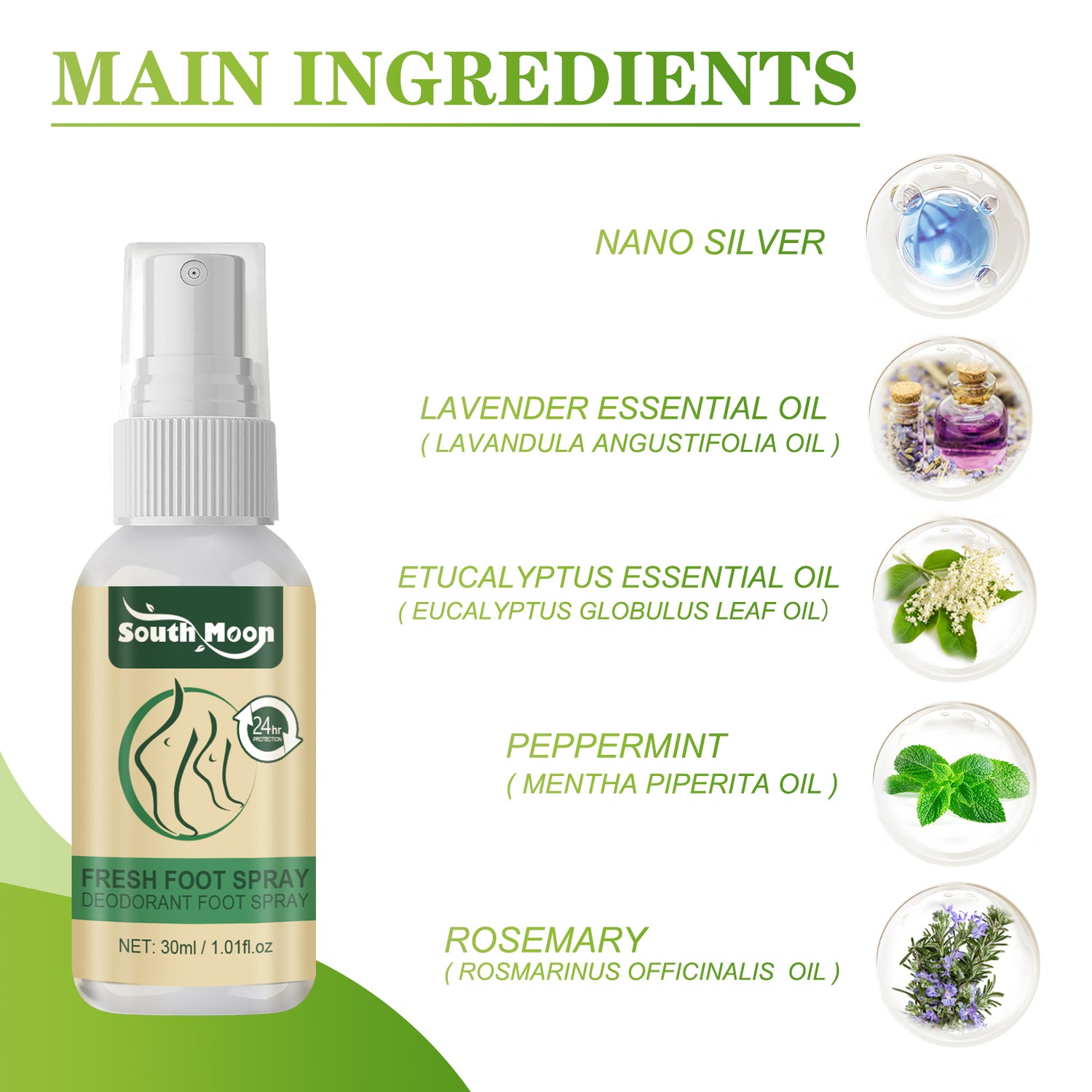 Spray para pies frescos, hidratante y con fragancia para pies secos y con descamación.