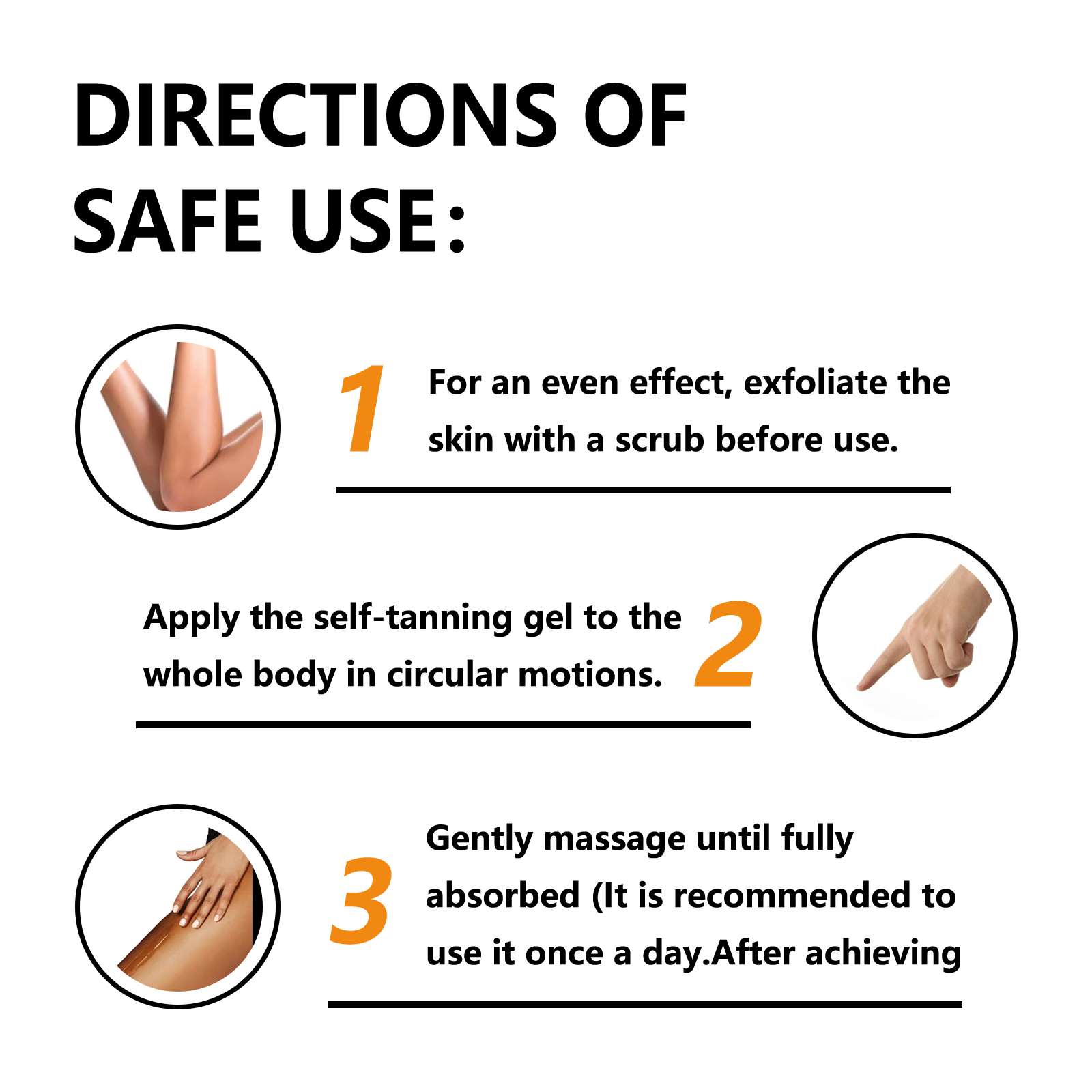 Nuestro Gel Autobronceador Intensivo contiene tocoferol, extracto de flor de Caléndula Officinalis y aceite de semilla de Daucus Carota Sativa (zanahoria). Consigue un bronceado uniforme, mantiene la piel bronceada y proporciona una hidratación duradera que la deja suave y tersa. Su aplicación es sencilla: Para un efecto uniforme, exfolia la piel con un exfoliante antes de usar. Aplica el gel autobronceador en todo el cuerpo con movimientos circulares. Masajea suavemente hasta su completa absorción (se recomienda usarlo una vez al día). Después de lograr un bronceado natural de verano, hidrata y previene las arrugas, dejándote un bronceado uniforme.