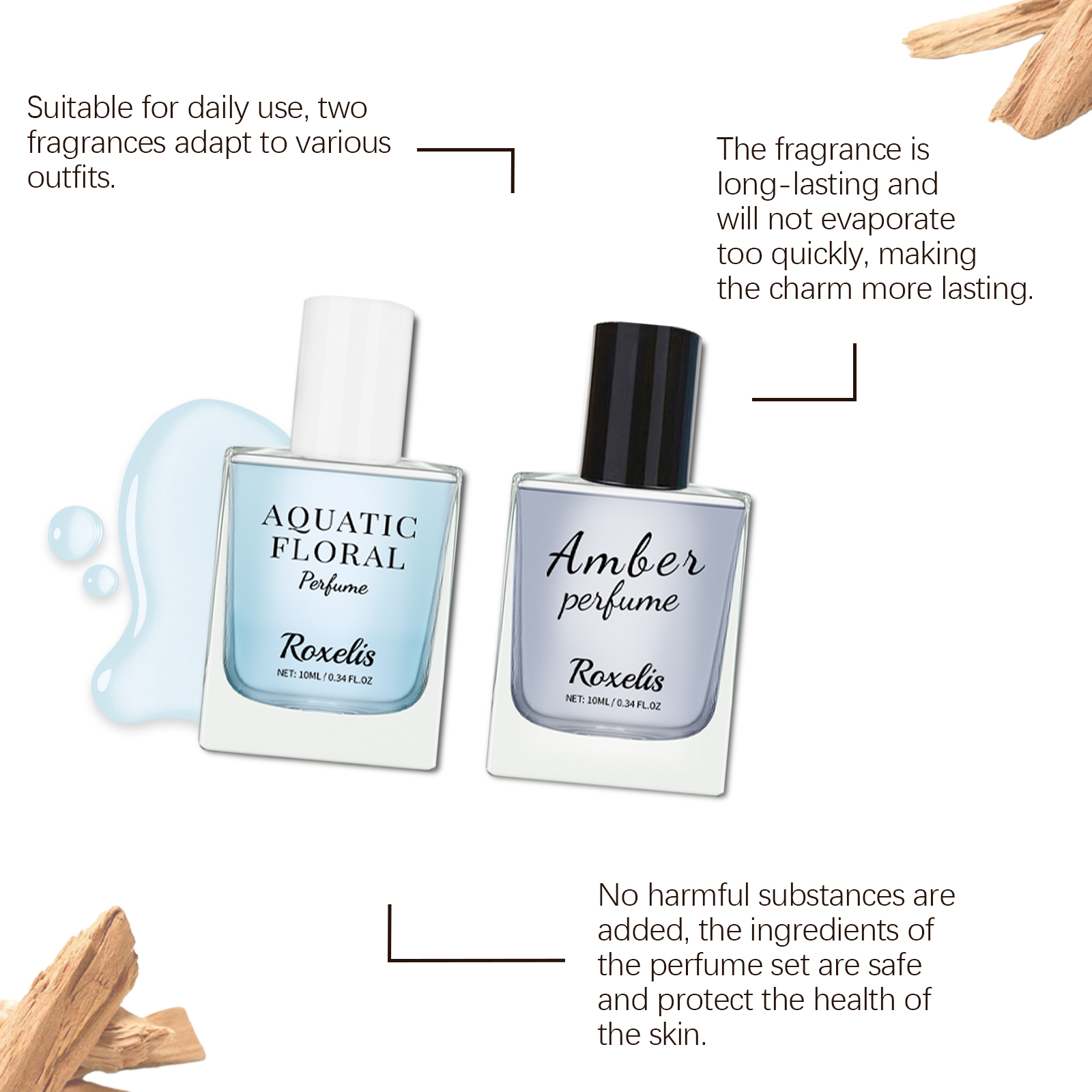 Nuestro lujoso set de Eau de Toilette contiene perfume de ámbar: extracto de ámbar e incienso; fragancia acuática: extracto de rosa y extracto de canela. Contiene ámbar y flores acuáticas, perfecto para diferentes ocasiones. Una selección de especias de alta calidad y aromas duraderos te dejarán con un aroma encantador durante todo el día. Su uso es sencillo: aplica el producto en la muñeca, detrás de la oreja, en las sienes, etc., y espera 2 minutos para que la fragancia se libere por completo. Su exquisito empaque en caja de regalo, de aspecto lujoso, es ideal para regalar o para uso personal.
