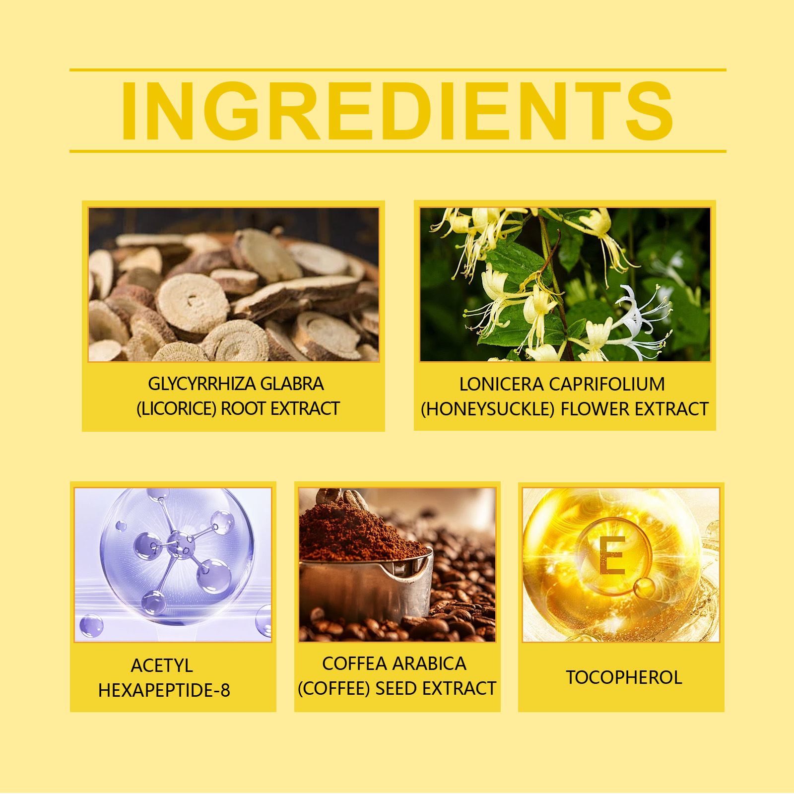 Nuestra crema hidratante para ojos contiene vitamina E y extracto de madreselva. Ofrece un cuidado ocular integral y reduce la flacidez y la opacidad del contorno de ojos. Su aplicación es muy sencilla: limpie y seque la piel del contorno de ojos, aplique la cantidad adecuada de crema uniformemente y masajee suavemente hasta su absorción. Además, promueve eficazmente la microcirculación ocular y ayuda a reducir la hinchazón y las bolsas.