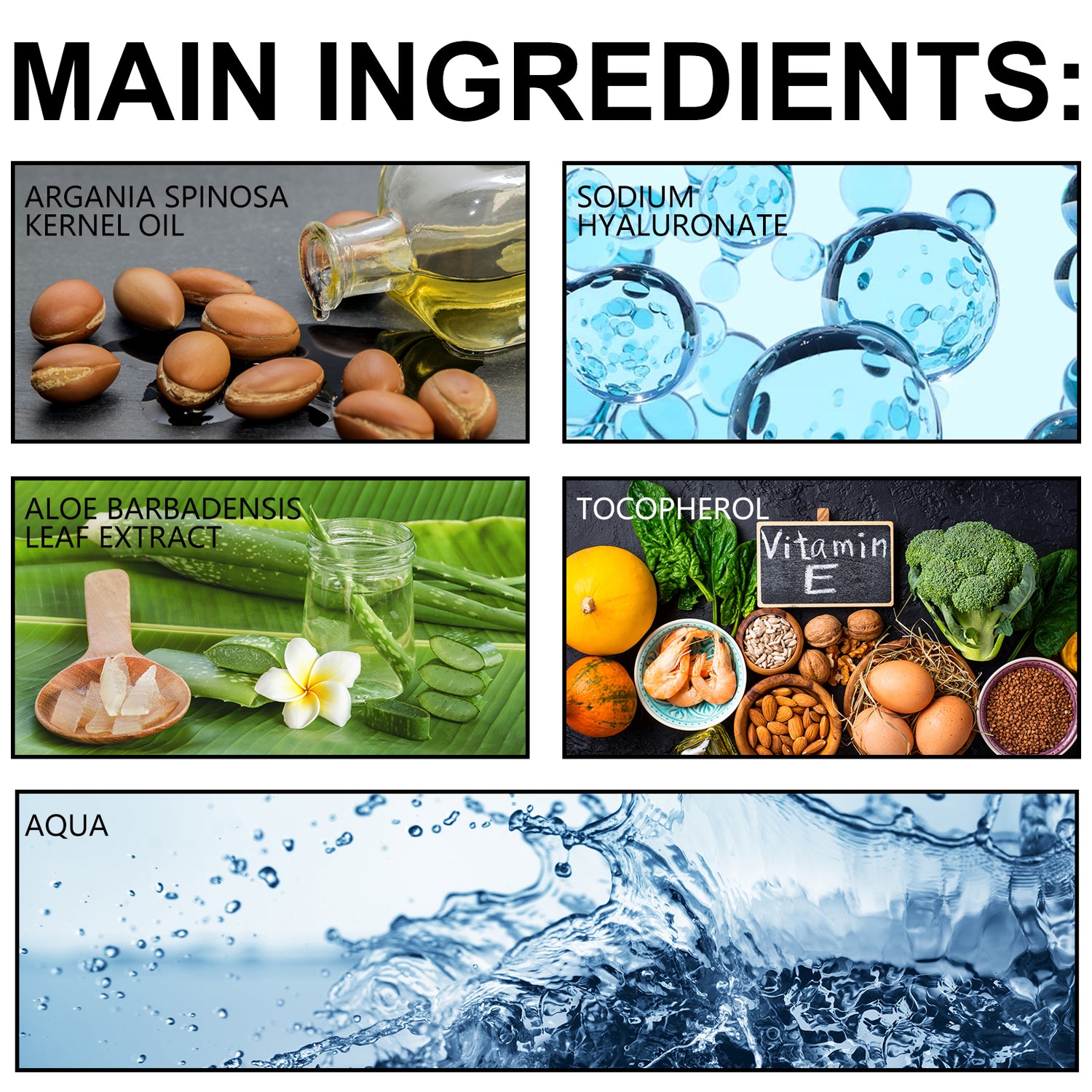 Nuestro Sérum Facial Multifuncional contiene aceite de semilla de Argania Spinosa, hialuronato de sodio y extracto de hoja de Aloe Barbadensis. Nutre profundamente la piel, reduce la aparición de arrugas, recupera su luminosidad juvenil y firme, atenúa eficazmente las pecas y restaura su luminosidad original. Su uso es muy sencillo: después de limpiar y tonificar, aplica la cantidad adecuada de esencia uniformemente sobre la piel del rostro y masajea suavemente con las manos en círculos para que se absorba. Reduce eficazmente las cicatrices, el acné y otras imperfecciones de la piel, restaurando una piel suave y delicada.