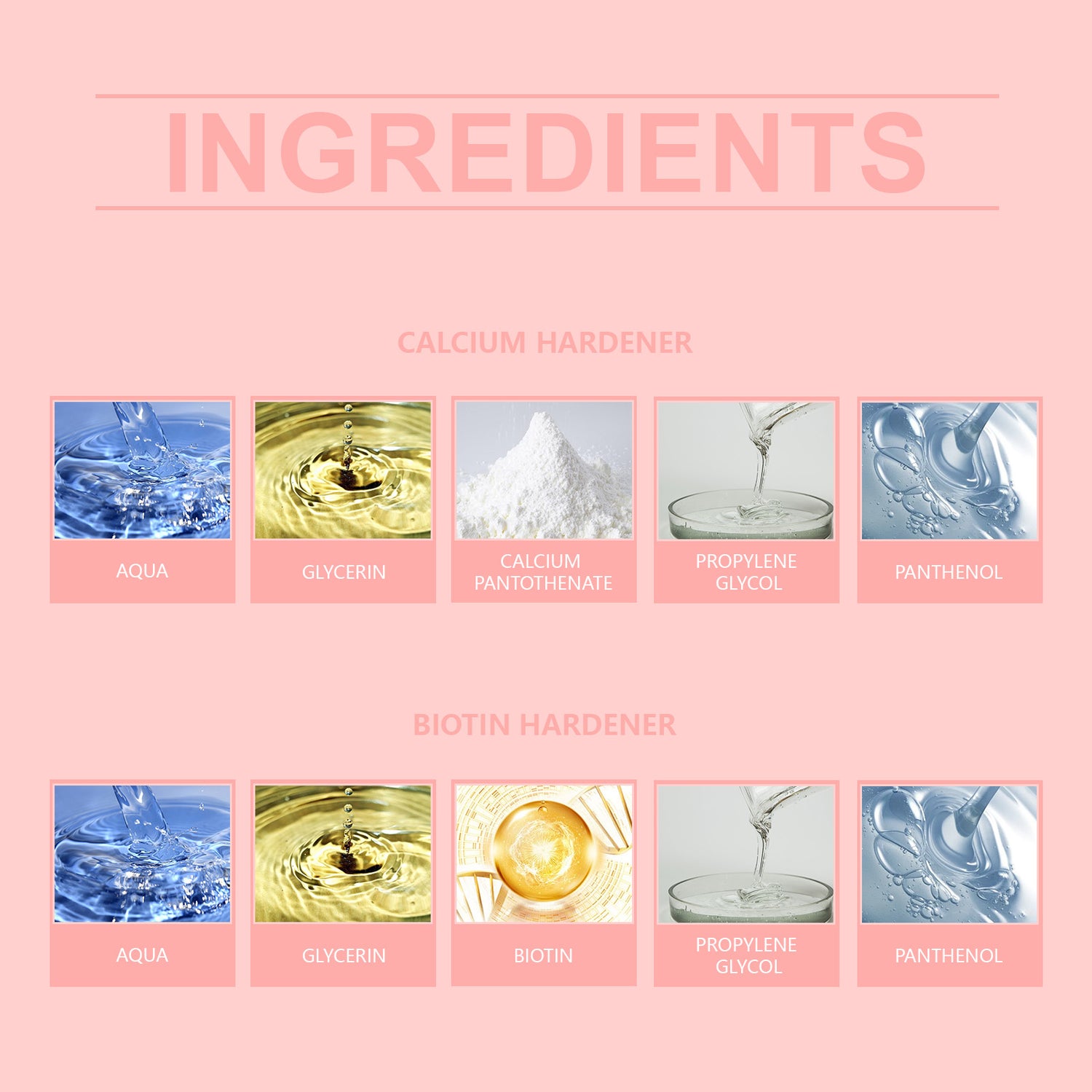 Nuestros lápices para el cuidado de las uñas contienen glicerina, pantotenato de calcio y pantenol. Fortalecen las uñas y previenen su fragilidad. Promueven el crecimiento y mantienen la vitalidad. Nutren en profundidad y mejoran las uñas secas. Su uso es sencillo: antes de usar, gira la mitad inferior del lápiz hasta que veas el producto en el pincel. Alterna el uso del endurecedor de biotina y el de calcio en tus uñas todas las noches durante al menos 6-8 semanas. Su fórmula única fortalece las uñas y las reduce; aumenta al instante el brillo natural de tus uñas.