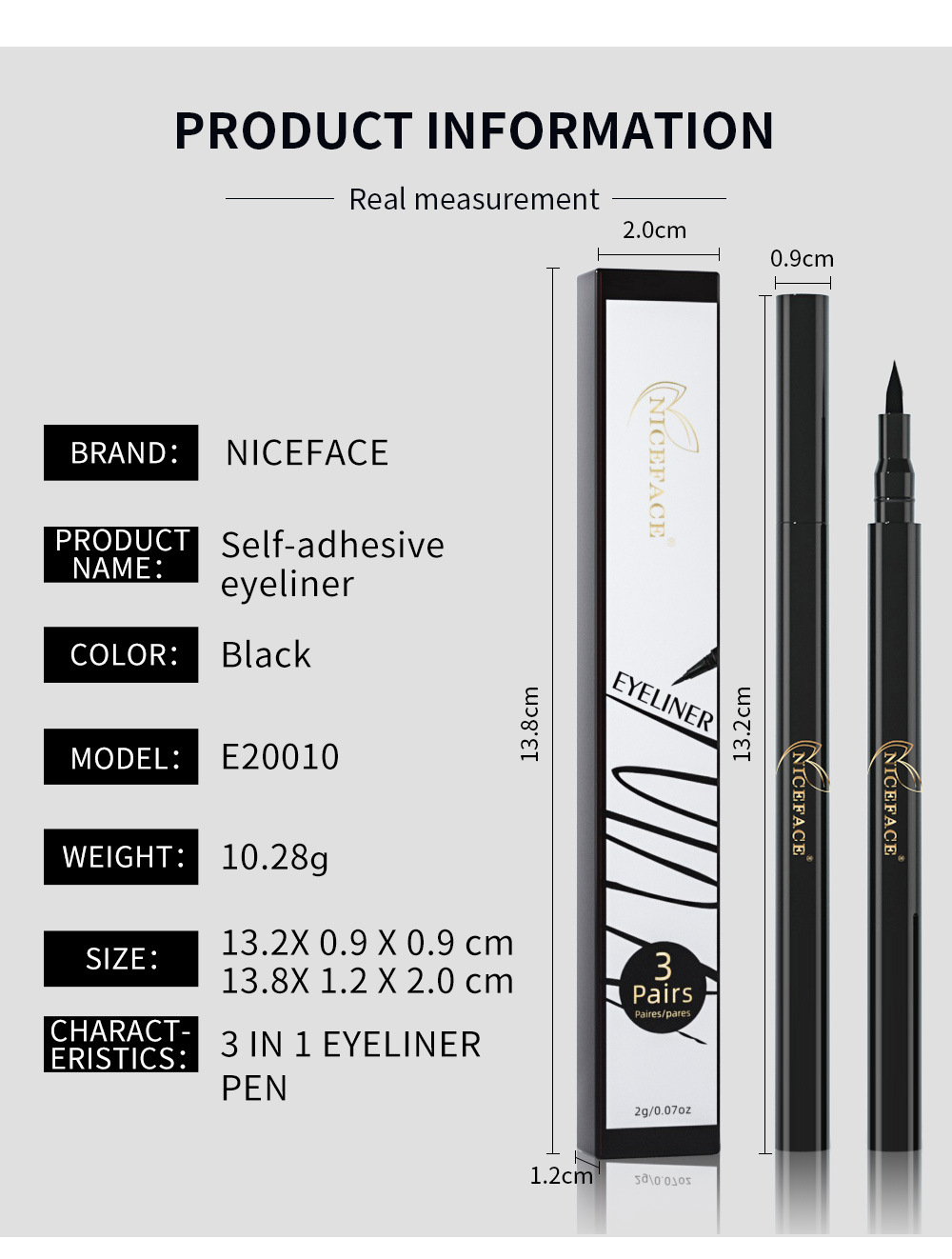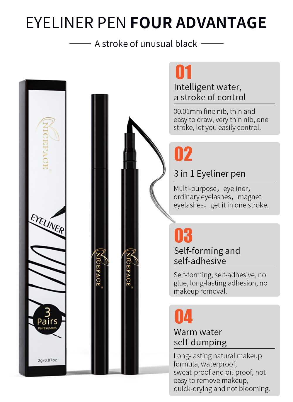 NICEFACE Eyeliner 3 In 1 Multifunctional Waterproof Anti-Smudge Non-Magnetic Natural Sticky Eyeliner - V.I.P Digital Presence