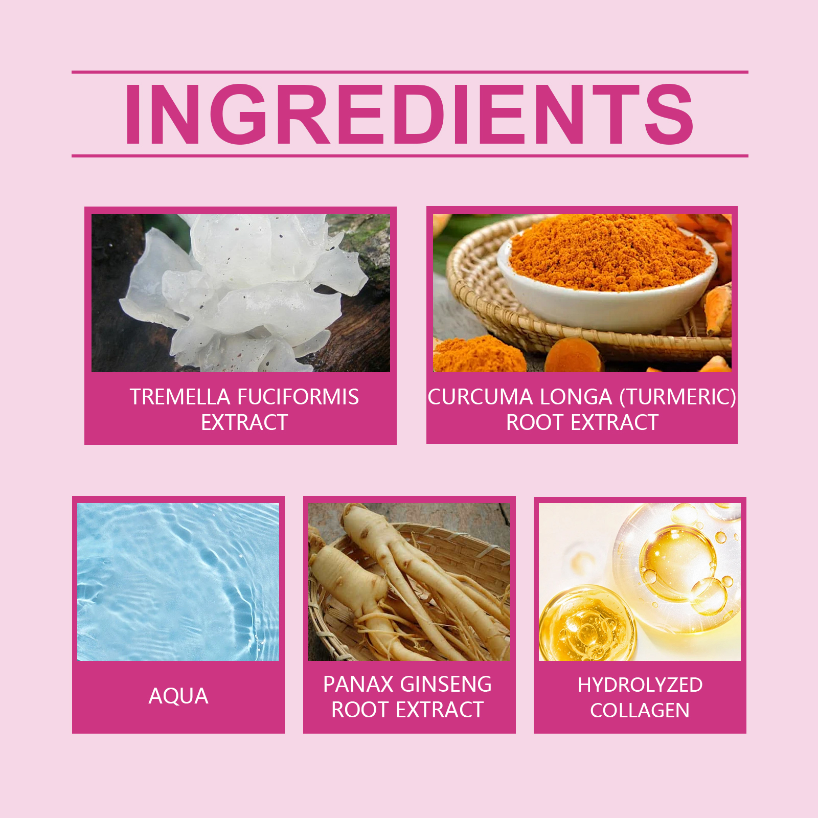 Nuestro aceite esencial corporal de colágeno contiene colágeno hidrolizado, extracto de hongo blanco y extracto de raíz de cúrcuma. Mejora la circulación sanguínea, acelera el metabolismo y ayuda a la piel a recuperar elasticidad y firmeza. Fácil de usar, masajear y usar en cualquier momento y lugar. Sus ingredientes activos promueven la producción de colágeno y mejoran la elasticidad de la piel. Su método de uso es muy sencillo: 1. Primero, limpie y seque la piel del cuerpo; 2. Aplique 2-3 gotas de este producto uniformemente en el pecho, los muslos y otras zonas de la piel que necesiten reafirmarse; 3. Masajee suavemente hasta su completa absorción. Aceite Esencial Corporal de Colágeno: Los suaves ingredientes del aceite esencial penetran profundamente para ayudar a reafirmar la piel de los senos, las caderas, los brazos y los muslos.