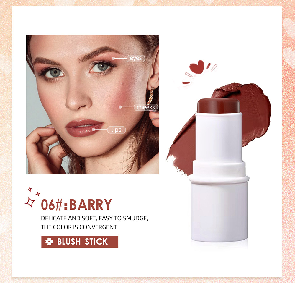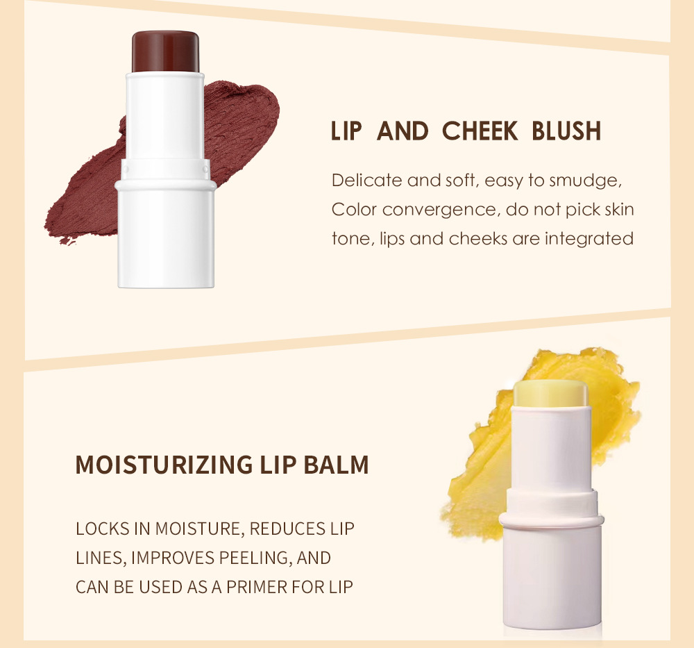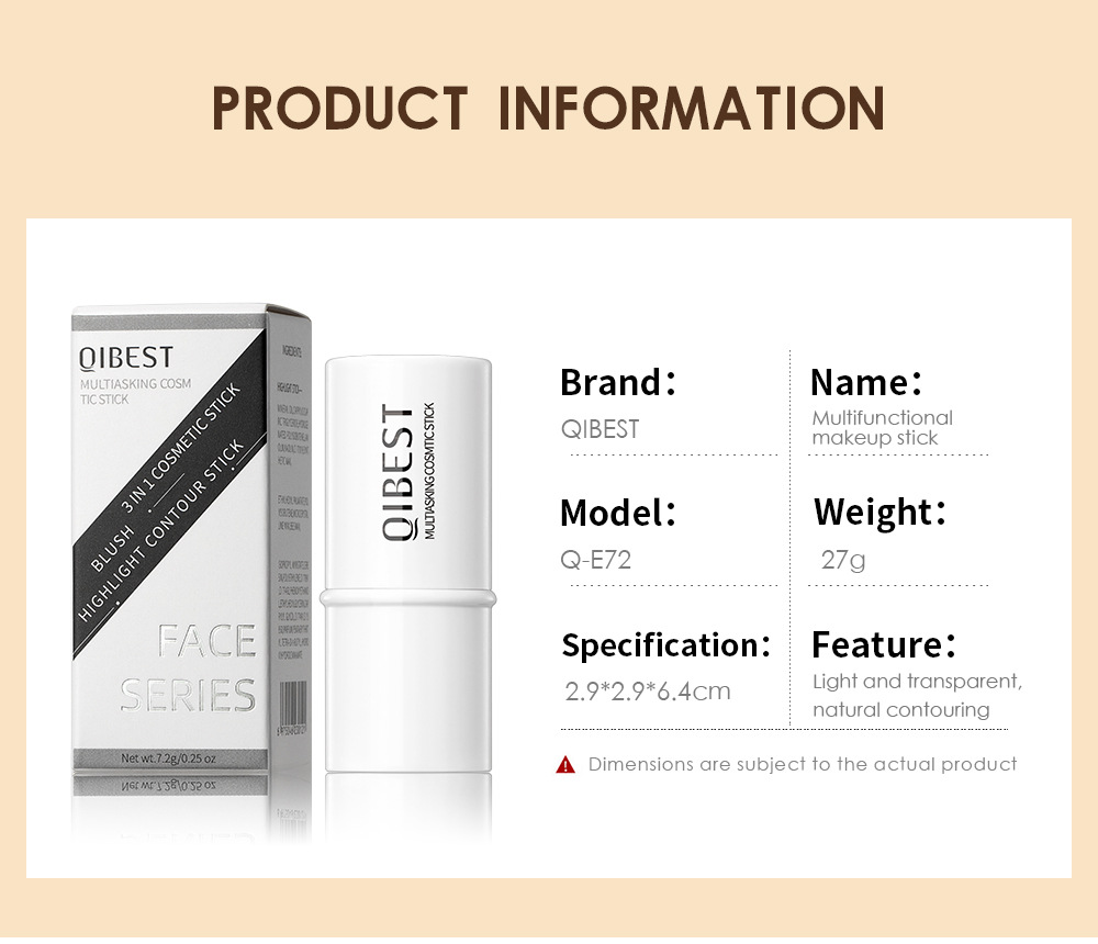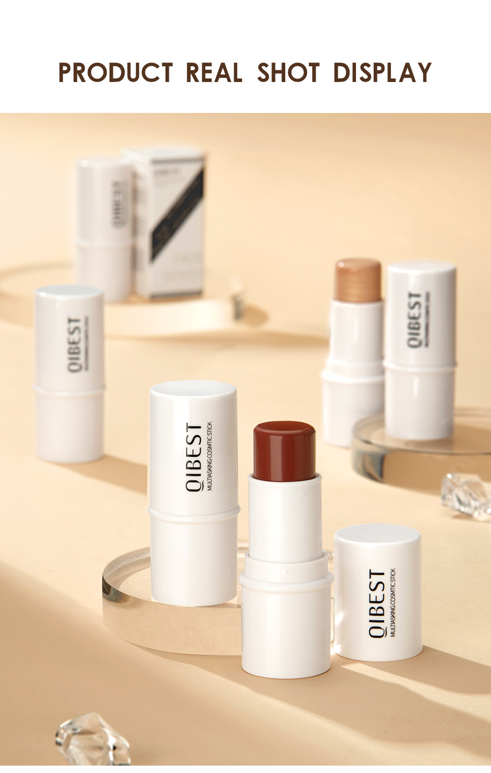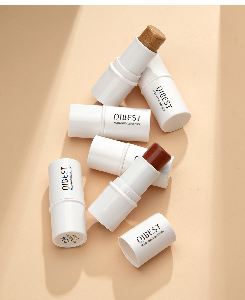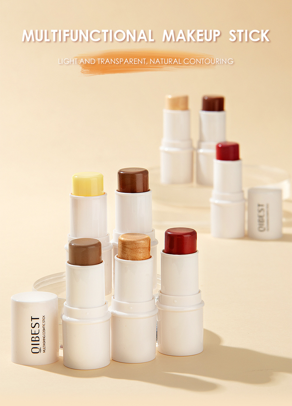 Barra de maquillaje multifuncional QIBEST, iluminador, rubor, bálsamo para contornear, lápiz labial, lápiz labial rojo.
