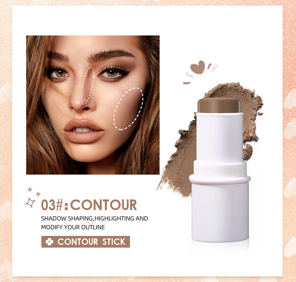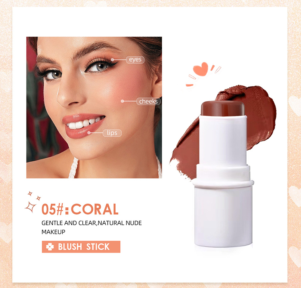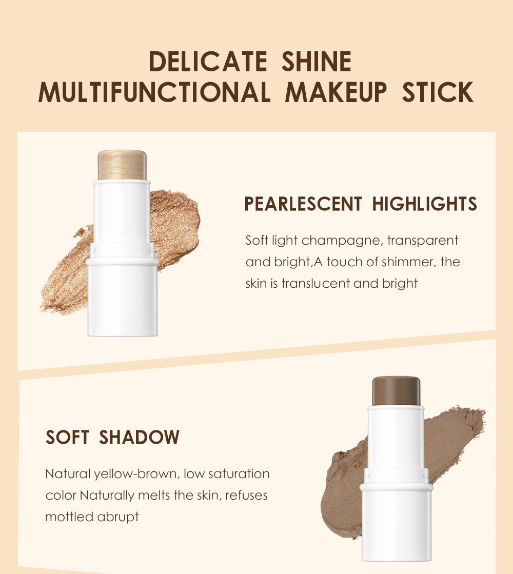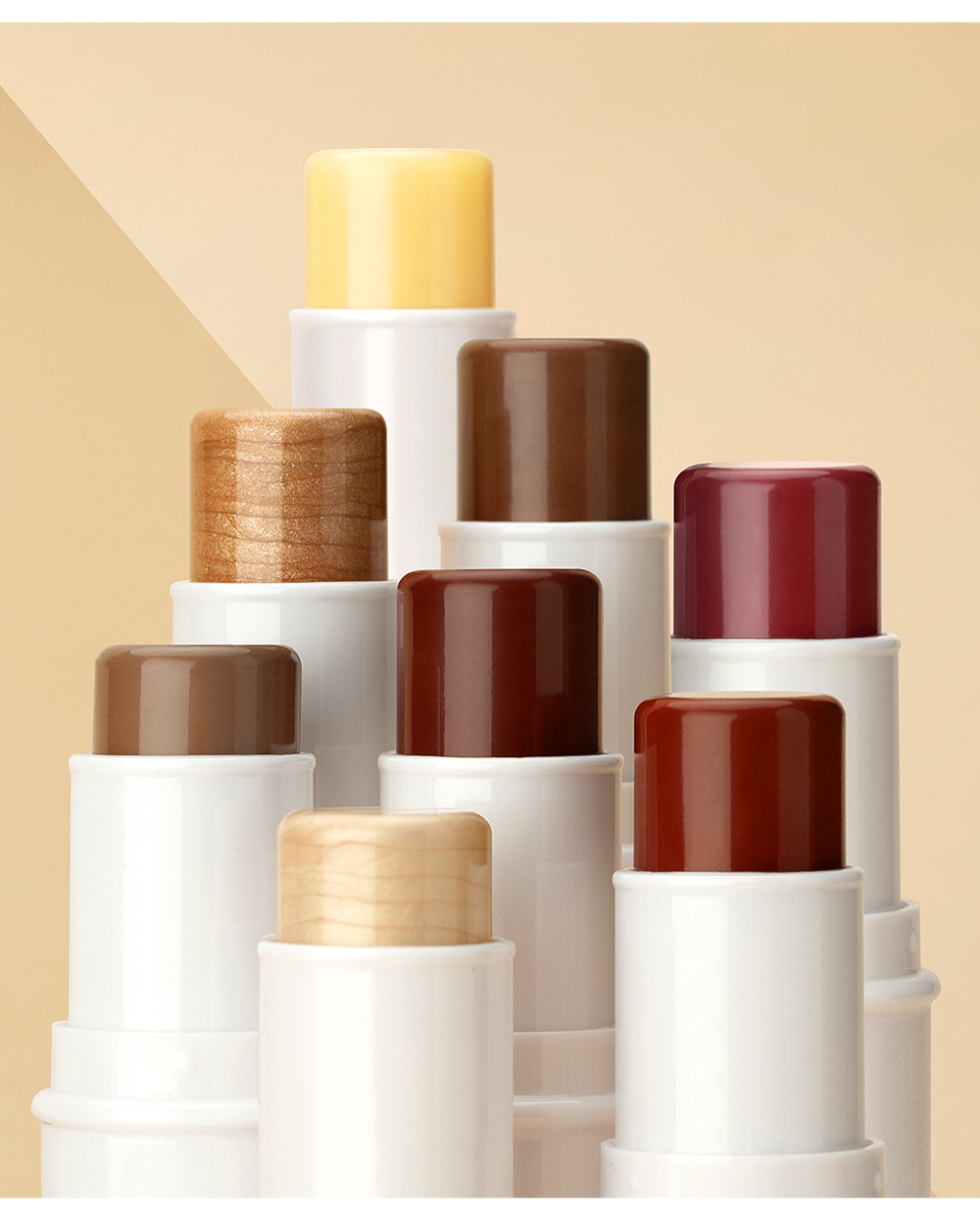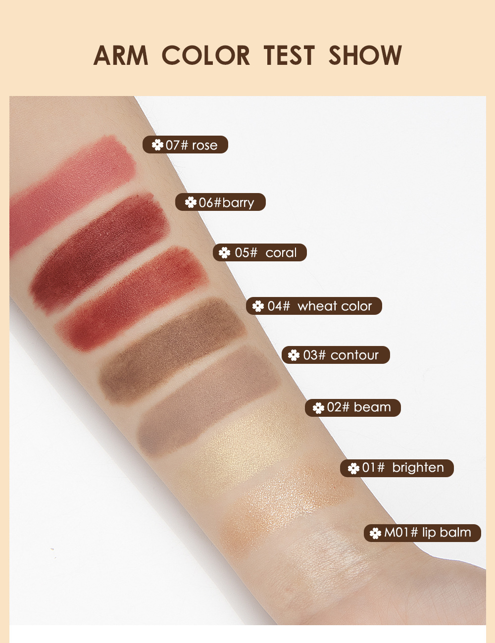 Barra de maquillaje multifuncional QIBEST, iluminador, rubor, bálsamo para contornear, lápiz labial, lápiz labial rojo.