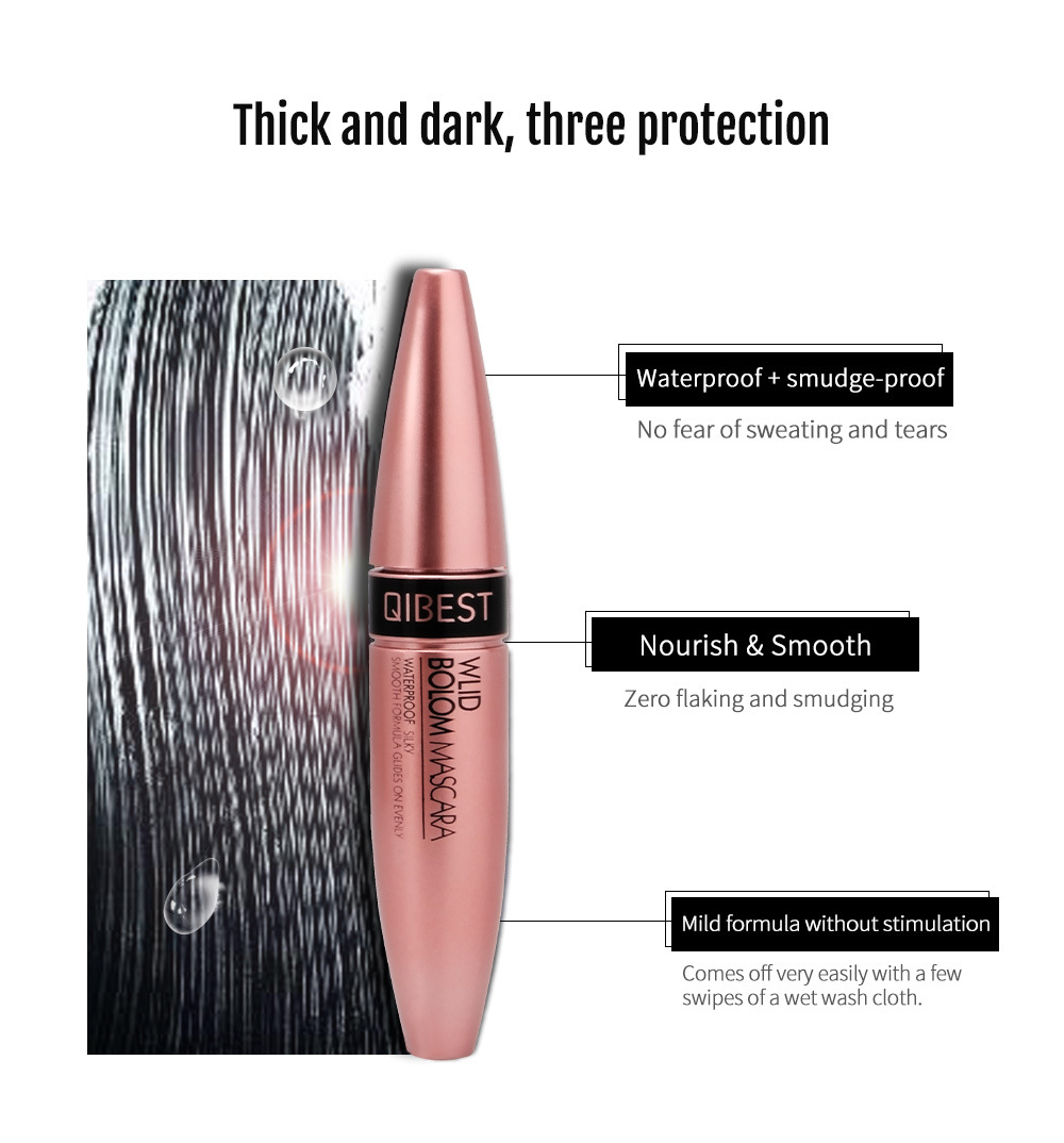 Máscara de pestañas 4D QIBEST resistente al agua, al sudor, densa, rizada, delgada, sin decoloración y sin manchas