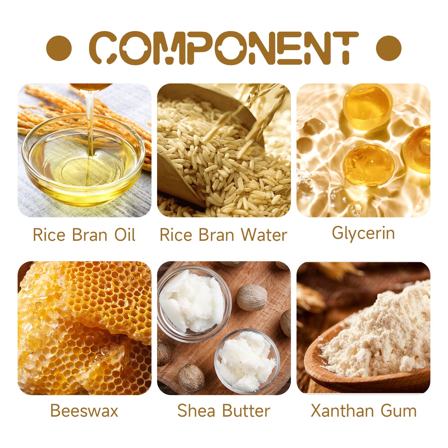 Nuestra crema de arroz contiene aceite de salvado de arroz, agua de salvado de arroz y glicerina. Mejora la firmeza de la piel, reduce las arrugas y la reafirma. Además, ilumina la piel, dejando un tono uniforme y radiante. Su uso es muy sencillo: 1. Después de limpiar y tonificar, aplicar; 2. Aplicar la cantidad adecuada de crema uniformemente sobre el rostro; 3. Masajear suavemente con las yemas de los dedos hasta su absorción. La crema de arroz tiene una excelente capacidad para mejorar la barrera cutánea y un efecto hidratante. Ayuda a absorber el sebo.