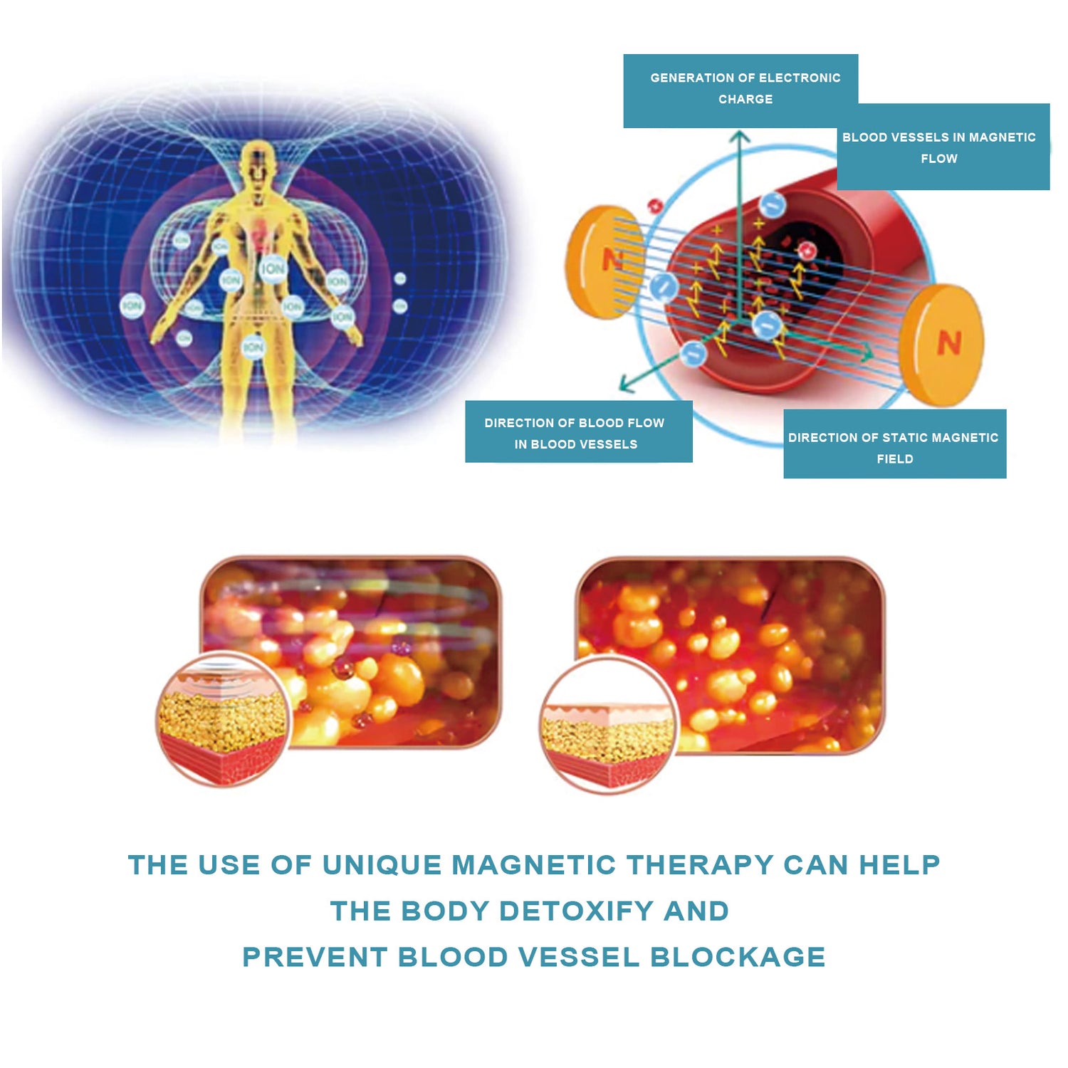 Nuestra pulsera de acero de titanio contiene una aleación de acero de titanio. Mejora la circulación sanguínea, promueve la salud general de los vasos sanguíneos y facilita el transporte de nutrientes en el cuerpo. Además, promueve una pérdida de peso saludable. Acelera tu metabolismo y te hace más saludable. Su uso es sencillo: colócala en el lugar correcto de tu muñeca. Esta pulsera de acero de titanio utiliza una terapia magnética única para ayudar a desintoxicar el cuerpo y prevenir la obstrucción de los vasos sanguíneos.