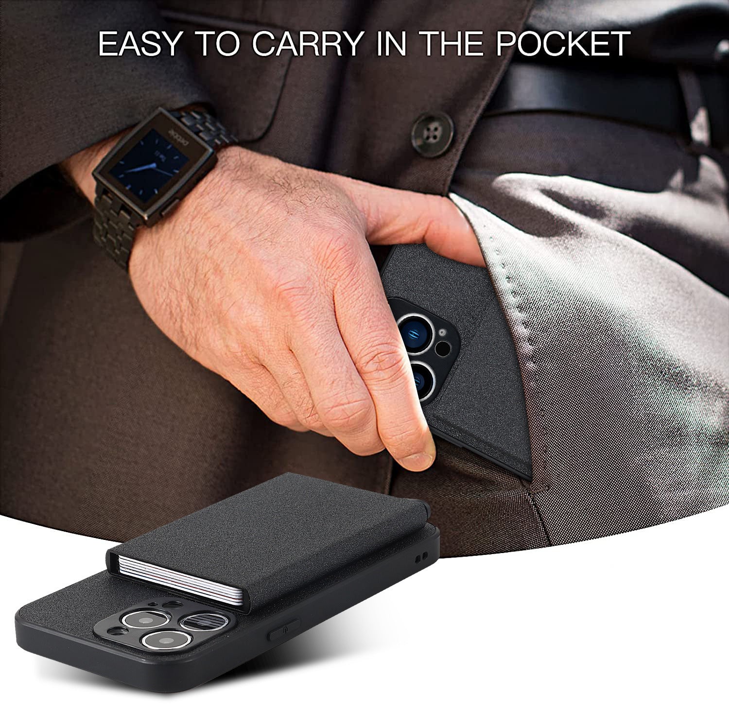 Adecuado para iPhone 14 PROMAX, funda de teléfono enchufable, funda de teléfono tipo billetera de aleación de aluminio para Apple 11, funda protectora IP13 - negro / iPhone 14 PROMAX está agotado y se enviará tan pronto como vuelva a estar disponible.