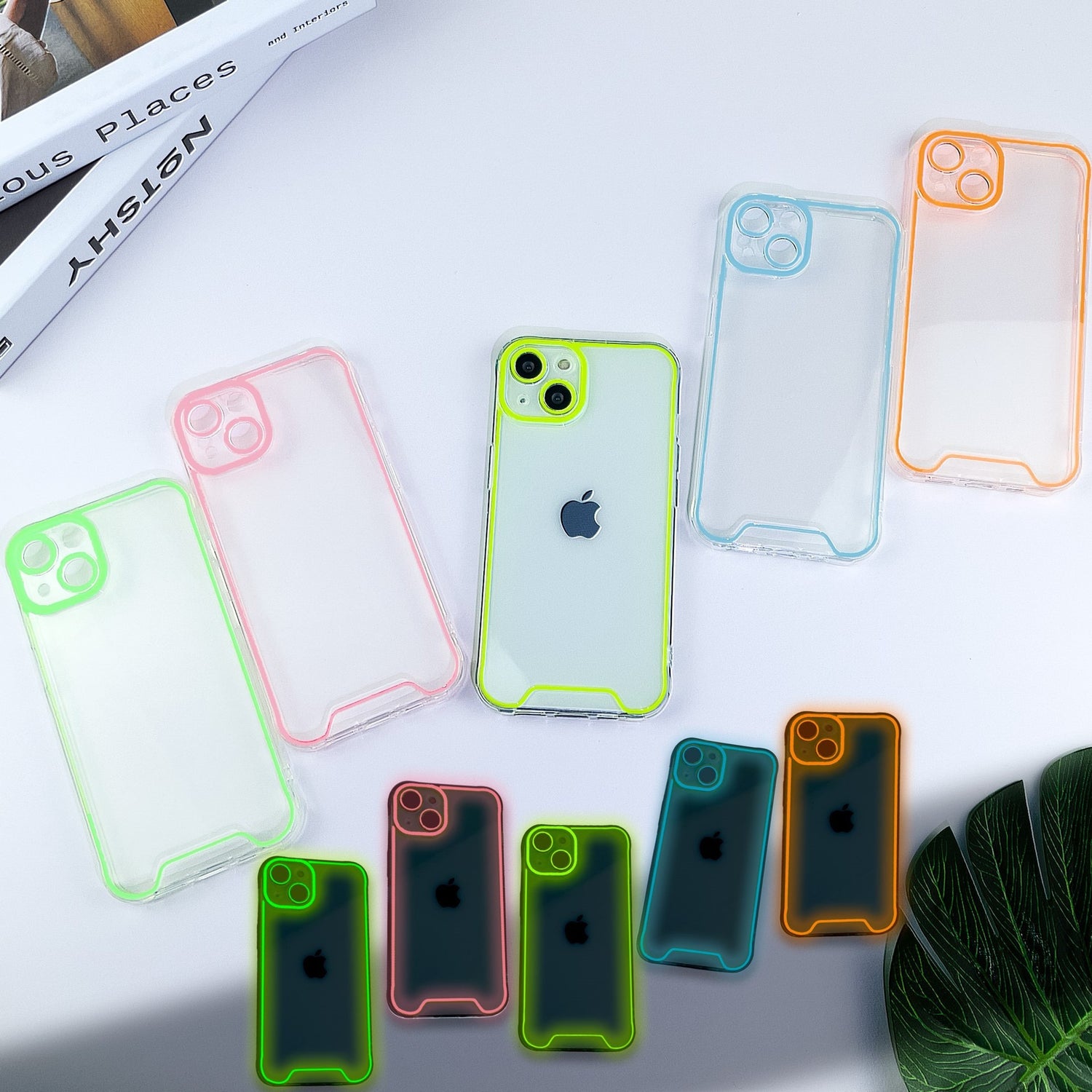 Adecuado para iPhone 15 Promax funda luminosa para teléfono Apple 13/12 material transparente funda protectora de silicona