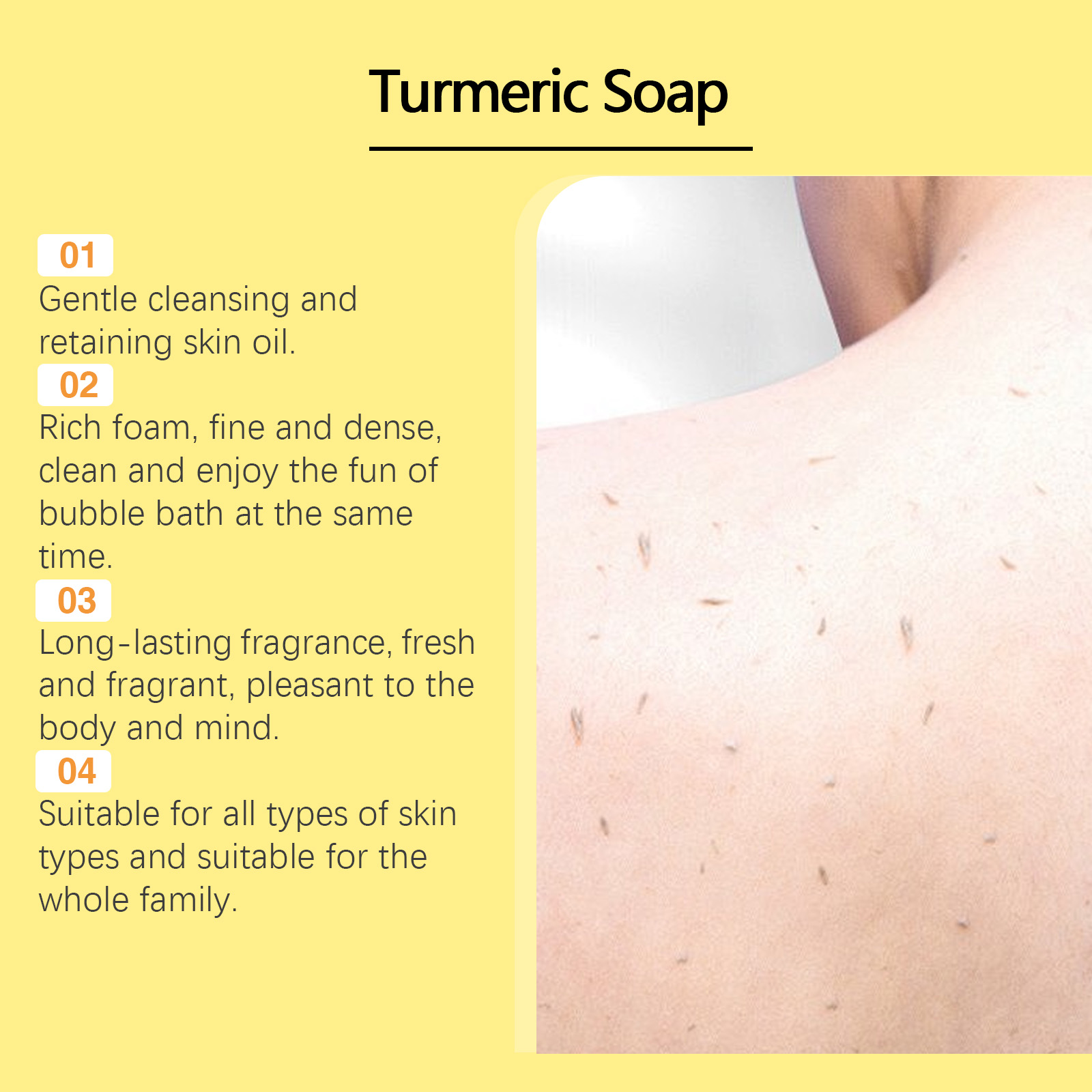 Nuestro jabón de baño de cúrcuma contiene extracto de raíz de cúrcuma, extracto de hoja de aloe vera y extracto de miel. Aclara eficazmente la piel y le aporta luminosidad. Nutrición enriquecida, hidratación profunda, calma la piel y mejora su elasticidad. Su modo de uso es muy sencillo: 1. Hidrata la piel con agua tibia; 2. Aplica la espuma de jabón en la palma de la mano, masajea suavemente el cuerpo y limpia con la espuma; 3. Enjuaga con agua. Limpia en profundidad y deja que los poros respiren libremente.