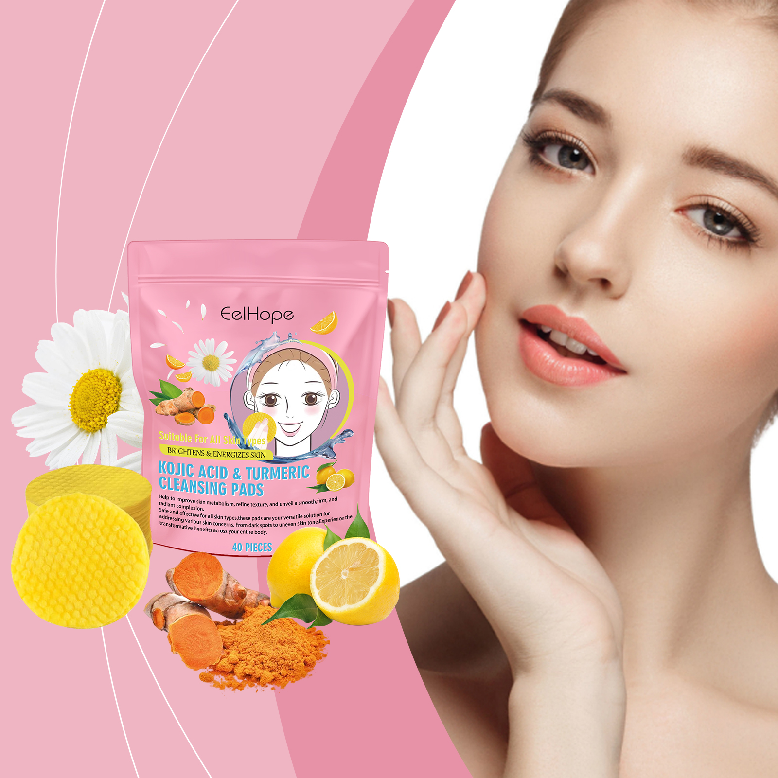 Almohadilla limpiadora de cúrcuma que limpia suavemente la piel del rostro e hidrata y humecta. Almohadilla limpiadora para el cuidado de la piel.