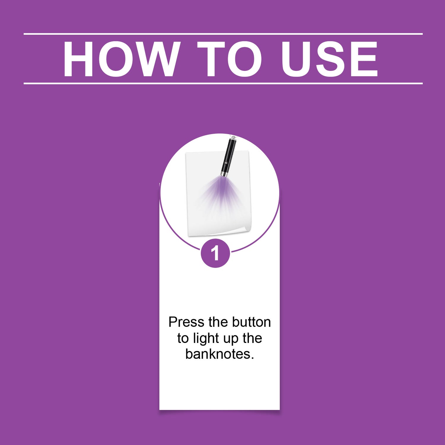Nuestro detector UV contiene metal. Incorpora una batería de litio de alta capacidad para un uso prolongado sin necesidad de recargas frecuentes. Su uso es sencillo: pulsa un botón y enciende el billete. Es pequeño y portátil, lo que permite usarlo en cualquier lugar.