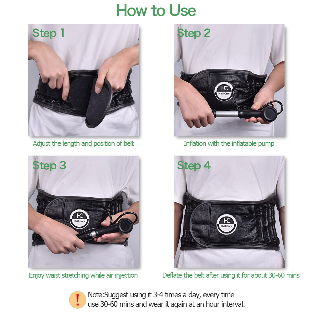 Cinturón de tracción inflable HailiCare para masaje lumbar con moxibustión caliente y terapia magnética de disco lumbar.