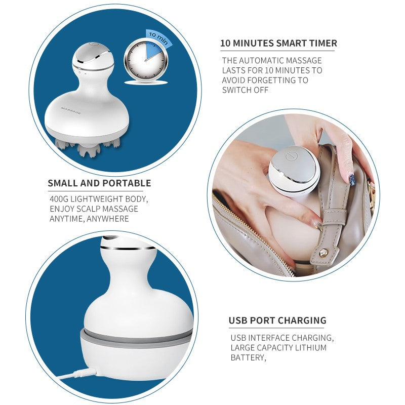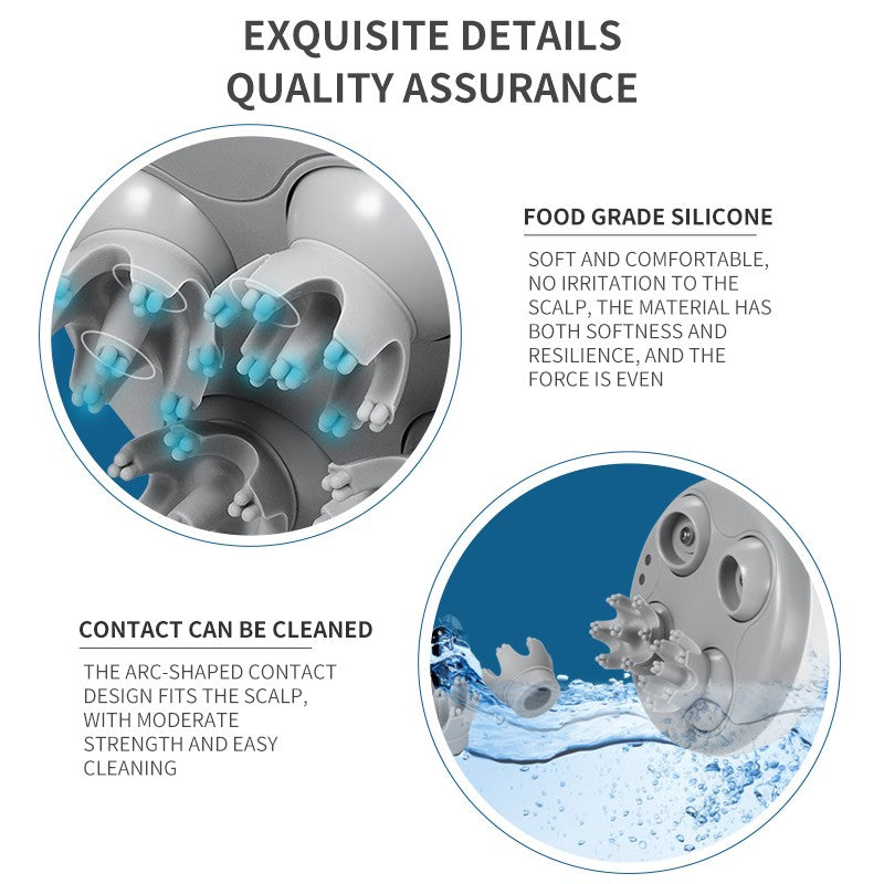 Masajeador de cabeza recargable, masajeador de cabeza eléctrico 3D, masajeador de cuero cabelludo, instrumento multifuncional de fisioterapia de cabeza.