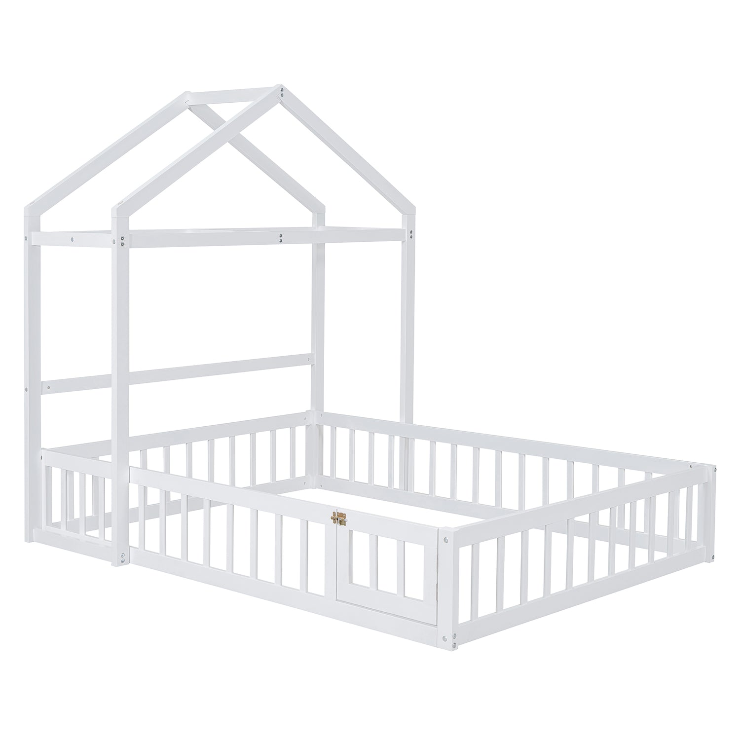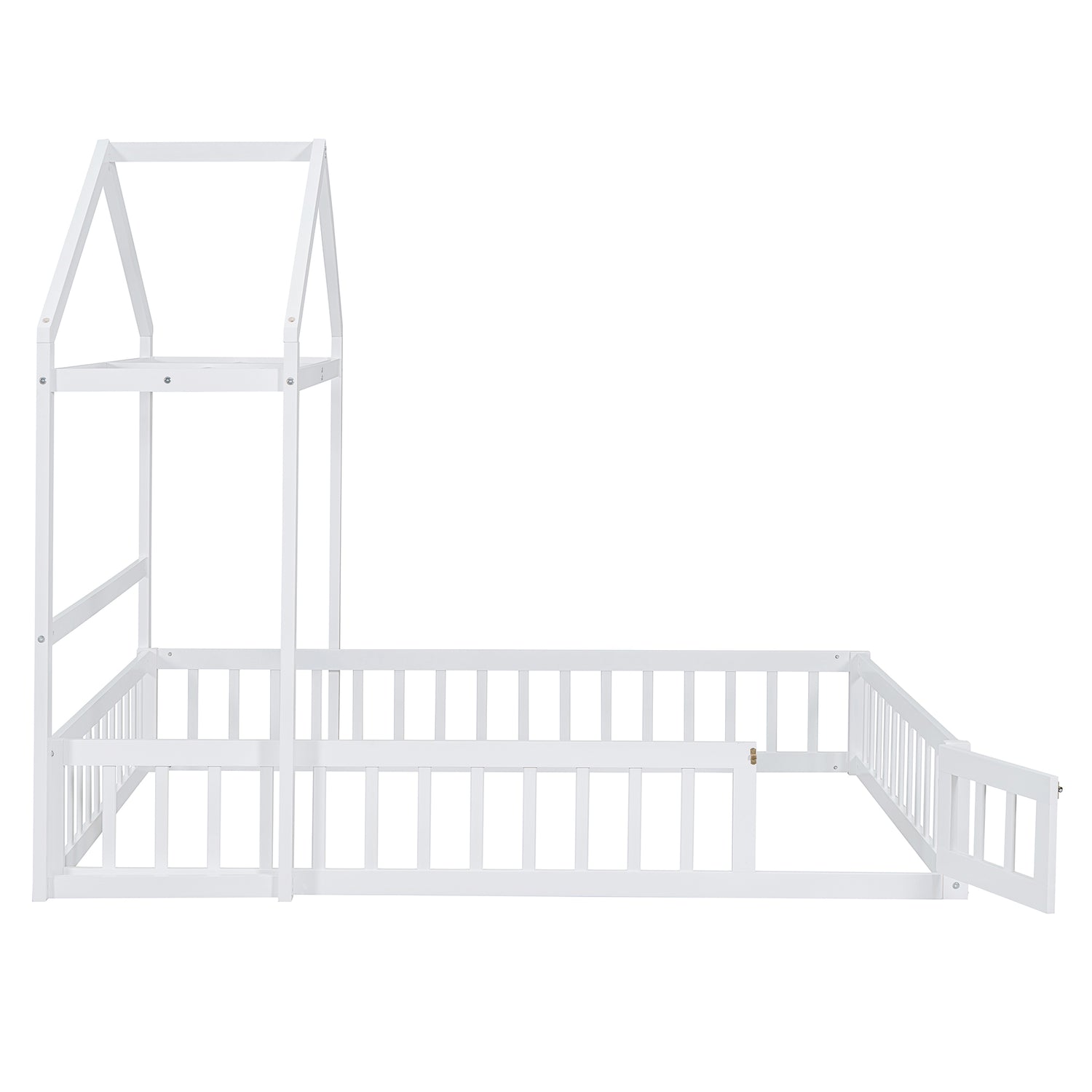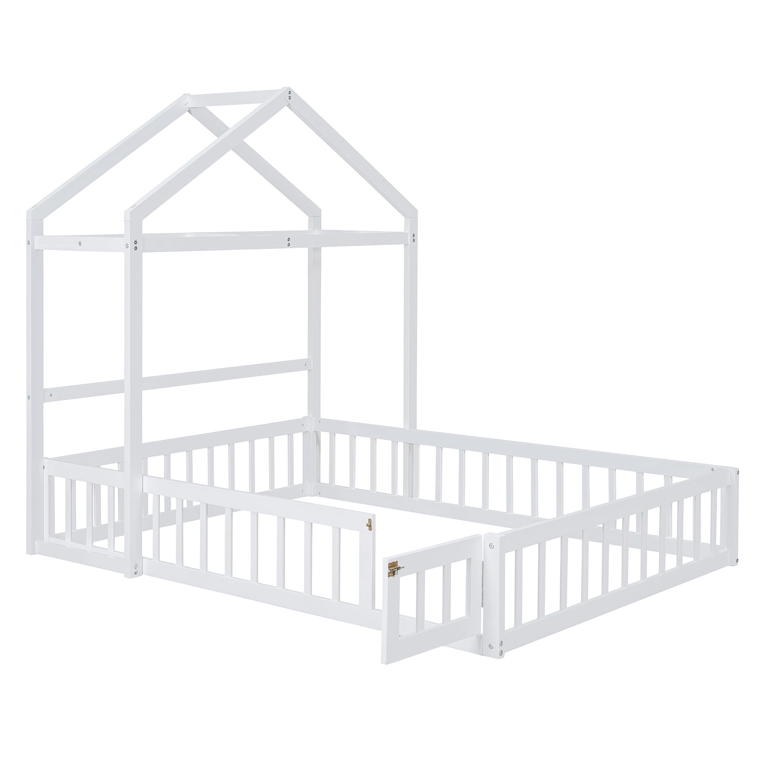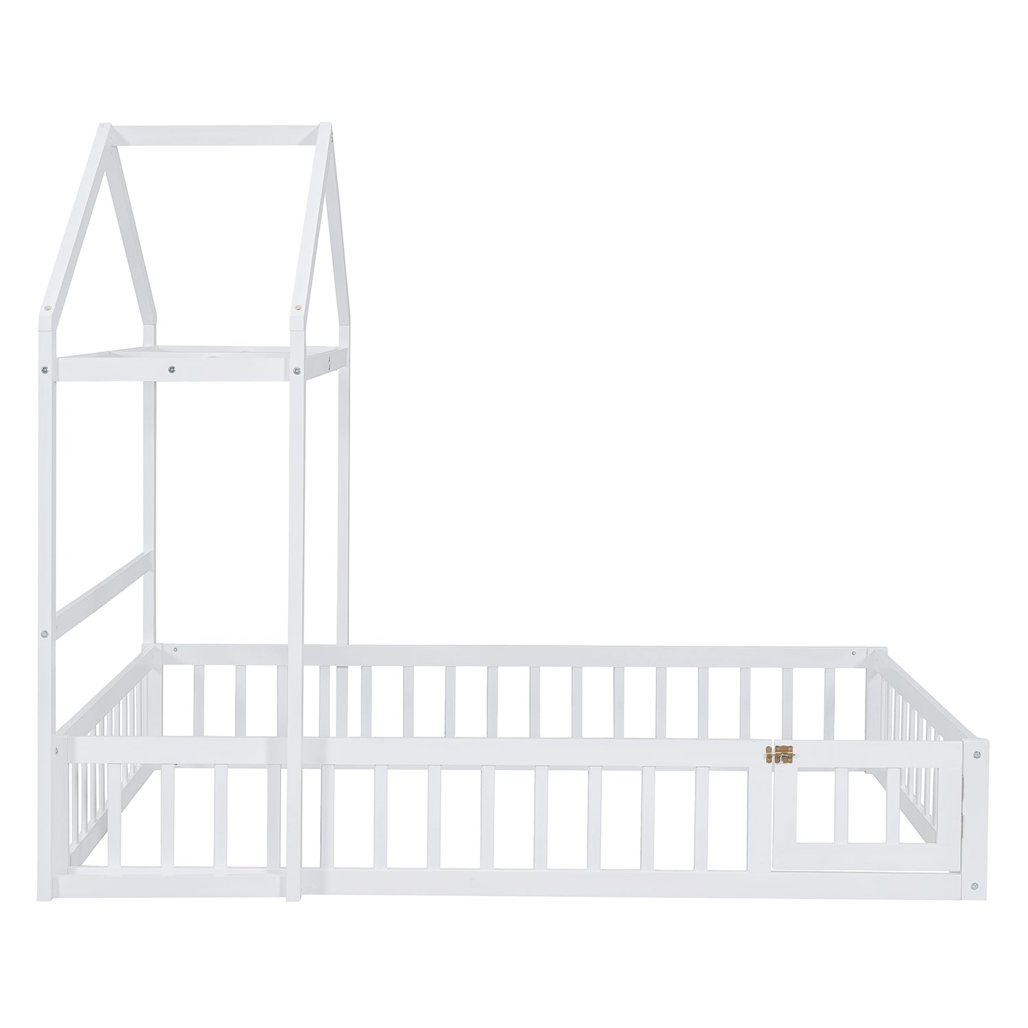 Calidad superior: La cama de la casa está construida con una robusta estructura de madera de pino que mejora su estabilidad y durabilidad. Además, la cerca y el marco del techo proporcionan un soporte firme y cómodo al colocar el colchón en el suelo.