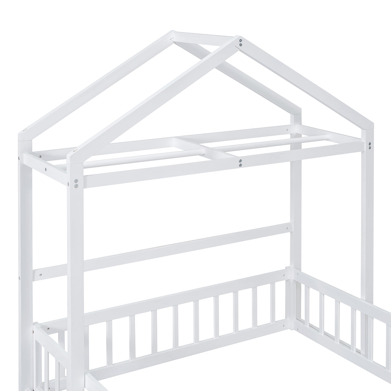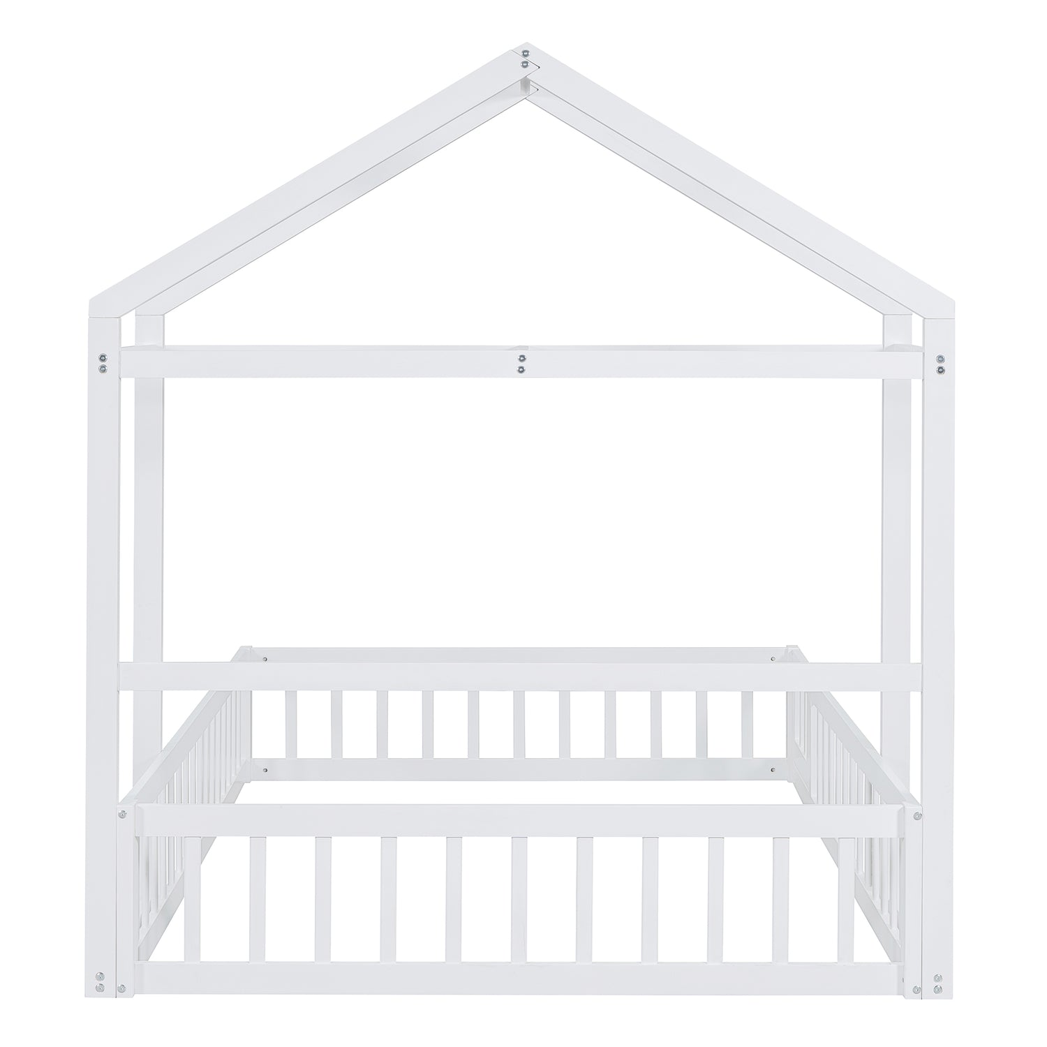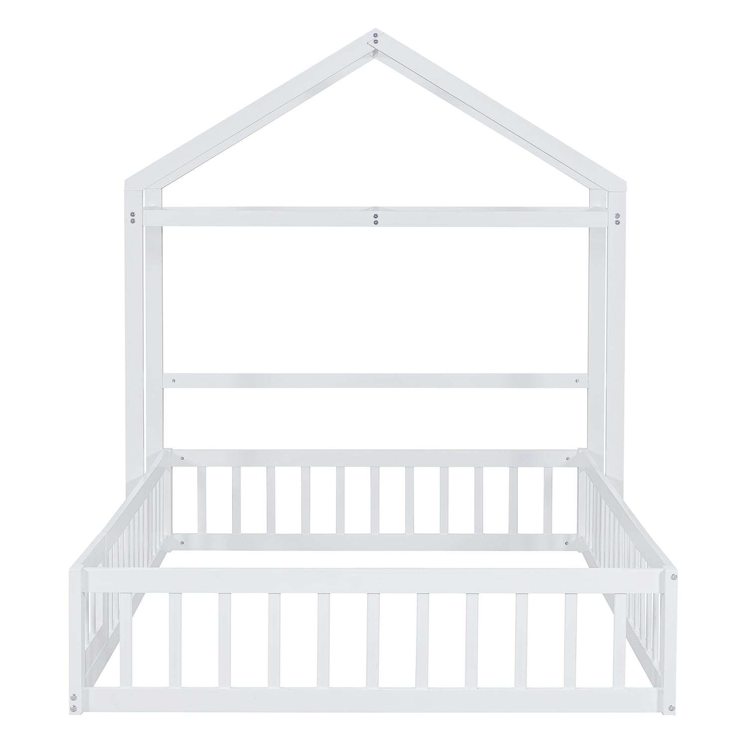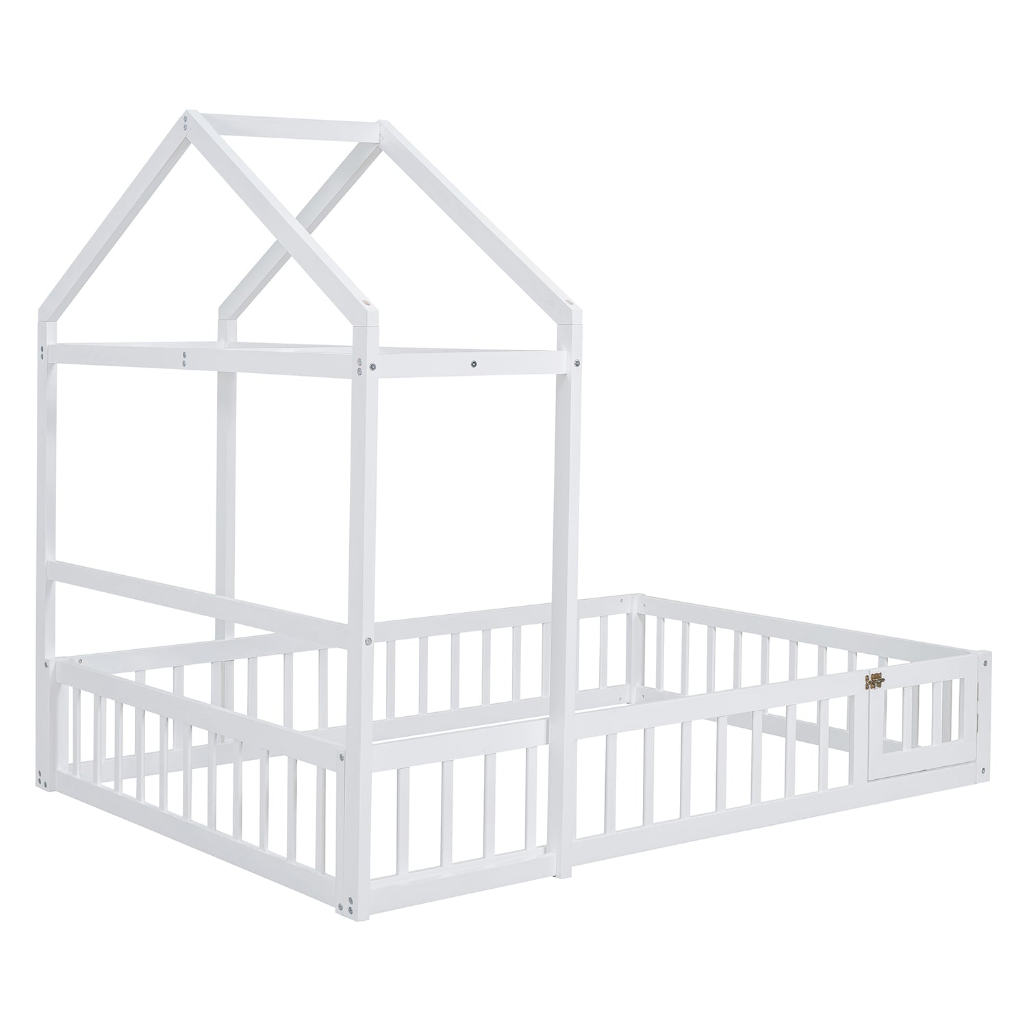 Calidad superior: La cama de la casa está construida con una robusta estructura de madera de pino que mejora su estabilidad y durabilidad. Además, la cerca y el marco del techo proporcionan un soporte firme y cómodo al colocar el colchón en el suelo.