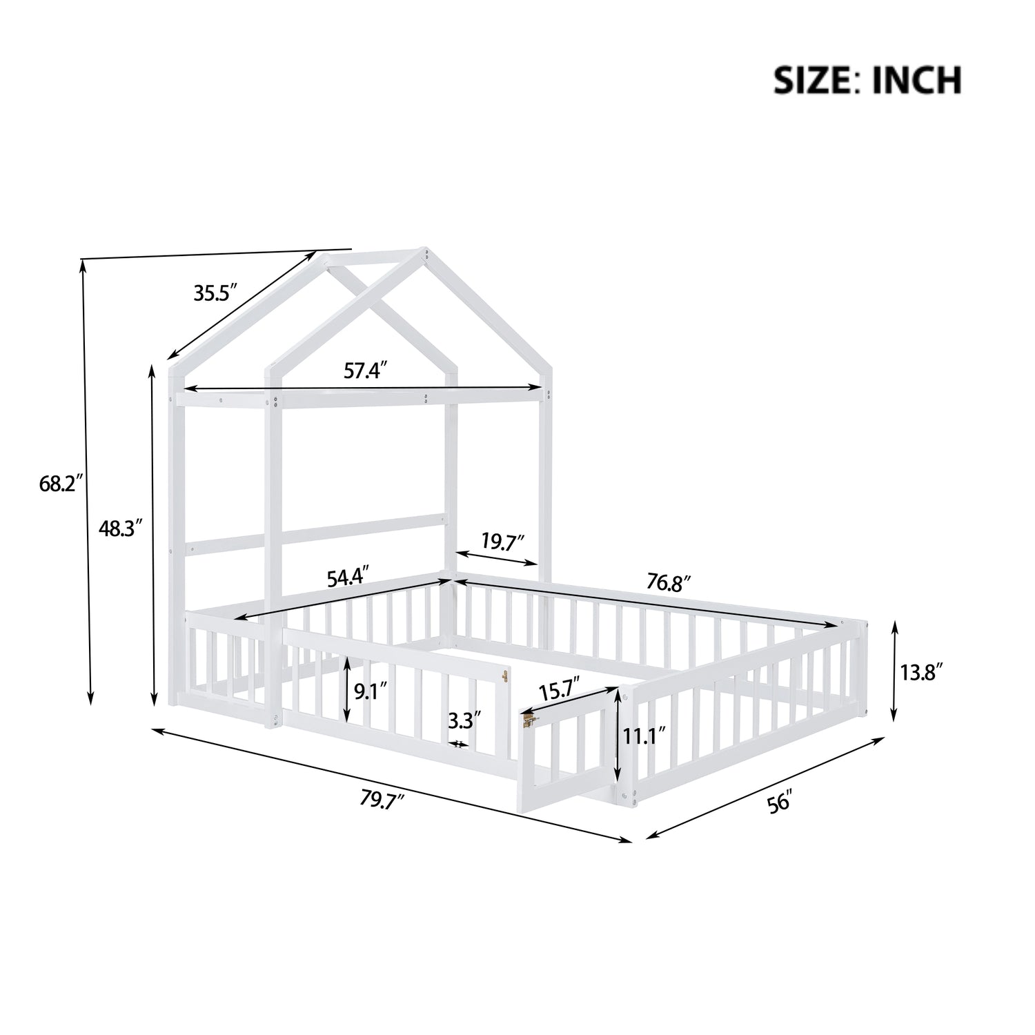 Dimensiones del producto: 79.7" de largo x 56" de ancho x 68.2" de alto. No incluye colchón. Requiere ensamblaje, aunque proporcionamos instrucciones claras y herramientas.