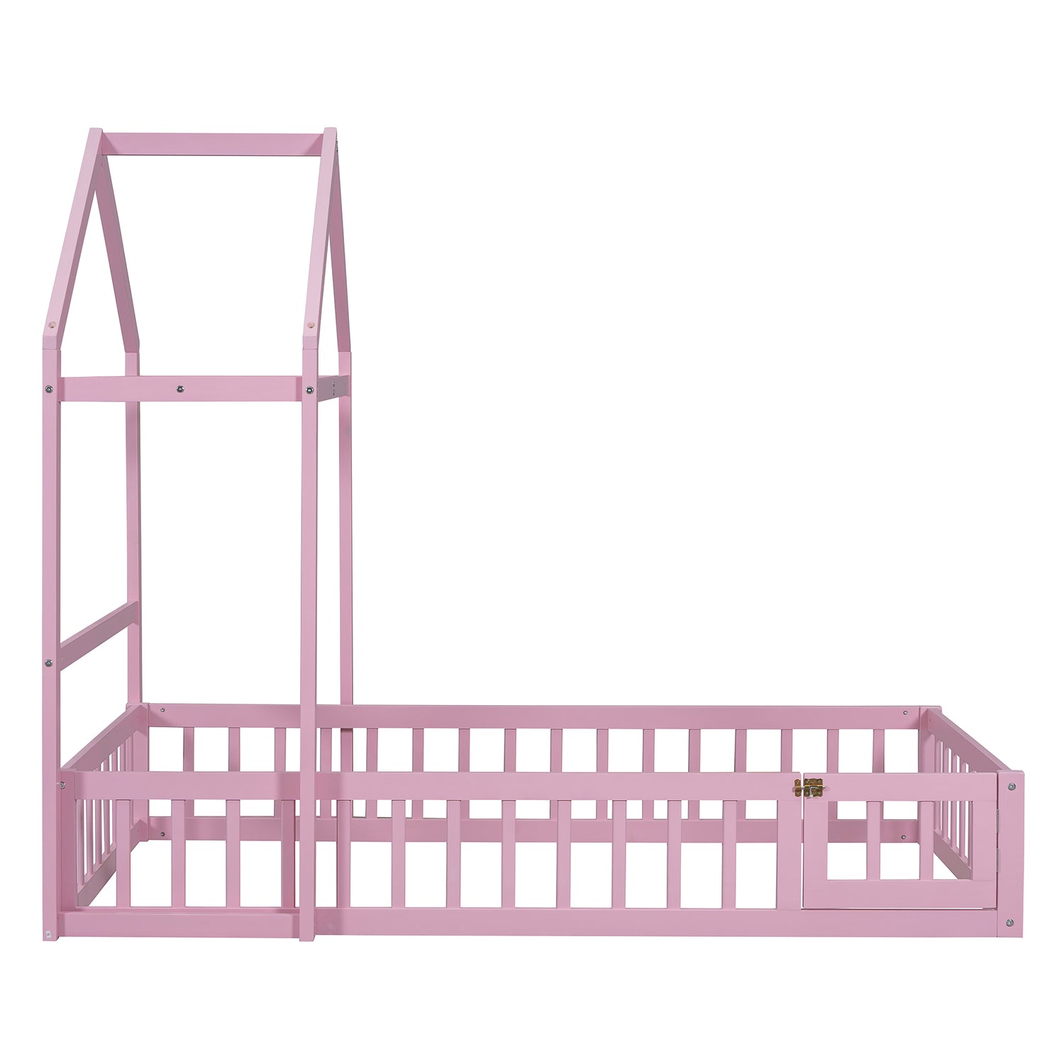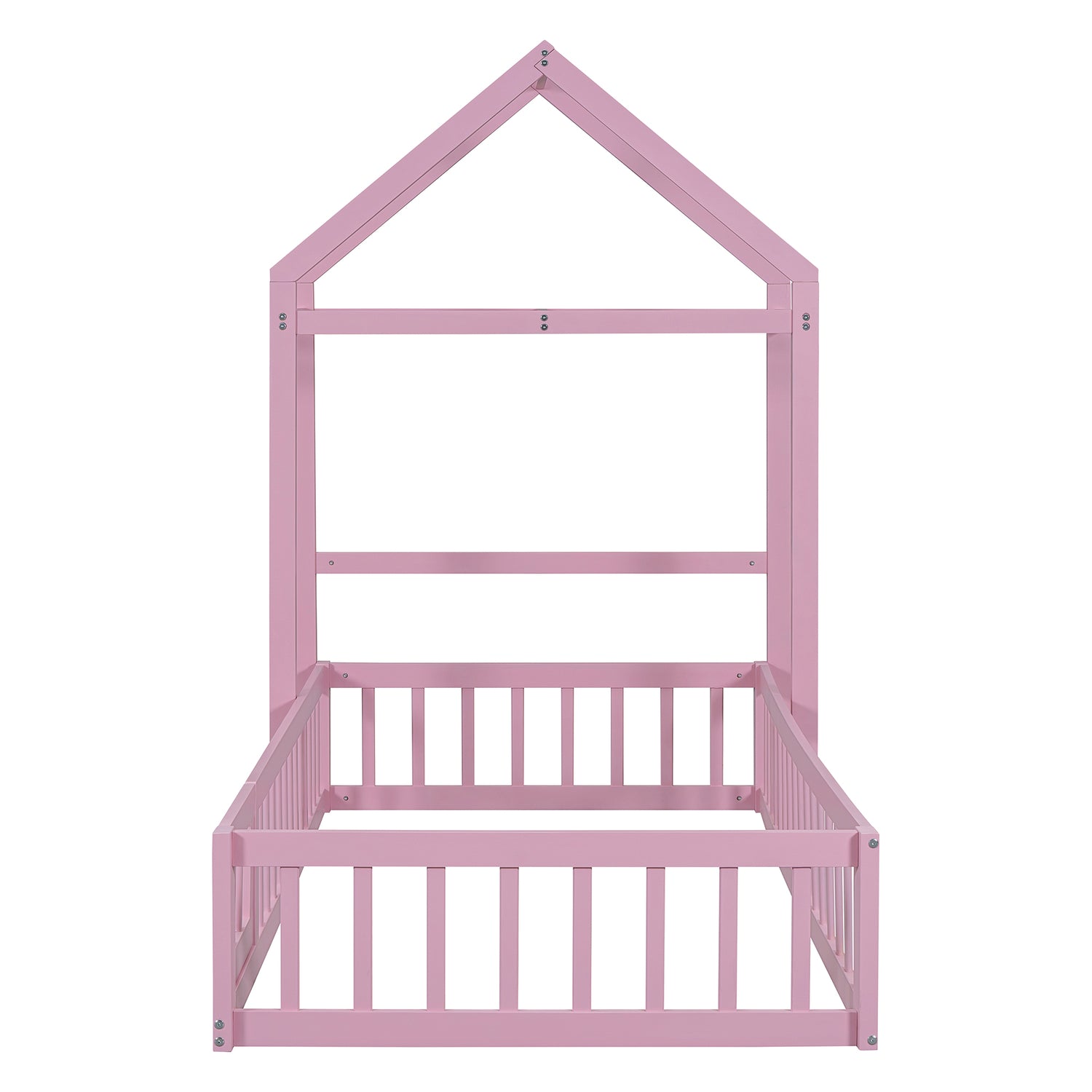 Calidad superior: La cama de la casa está construida con una robusta estructura de madera de pino que mejora su estabilidad y durabilidad. Además, la cerca y el marco del techo proporcionan un soporte firme y cómodo al colocar el colchón en el suelo.