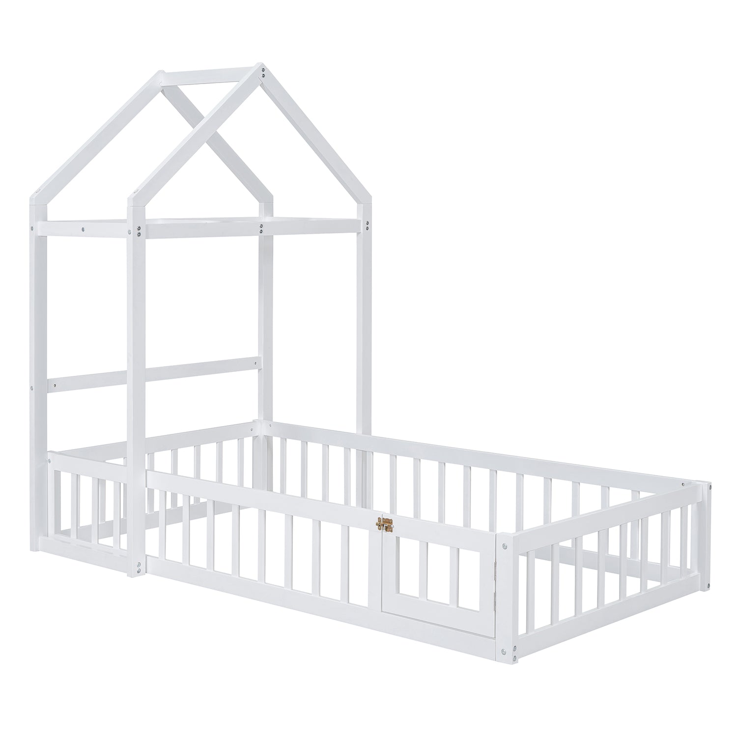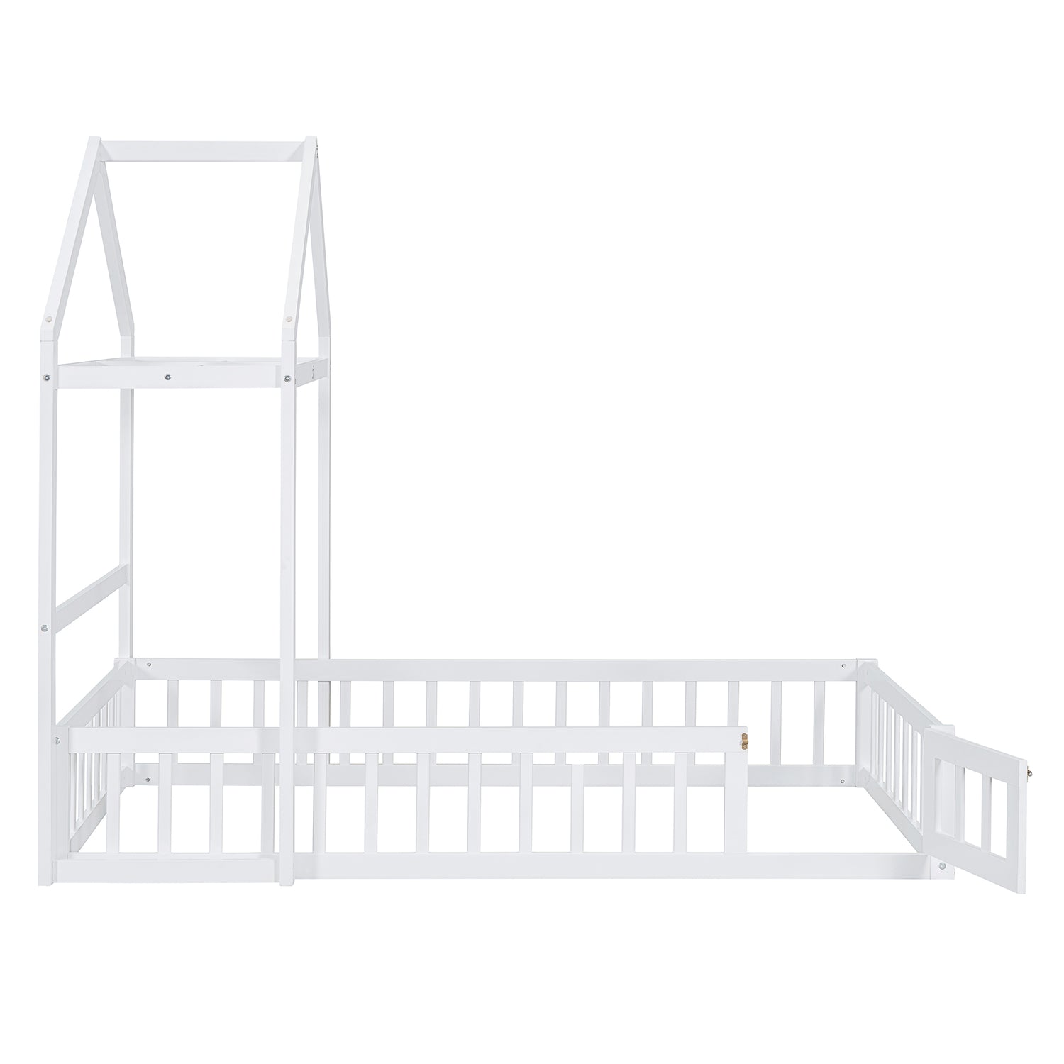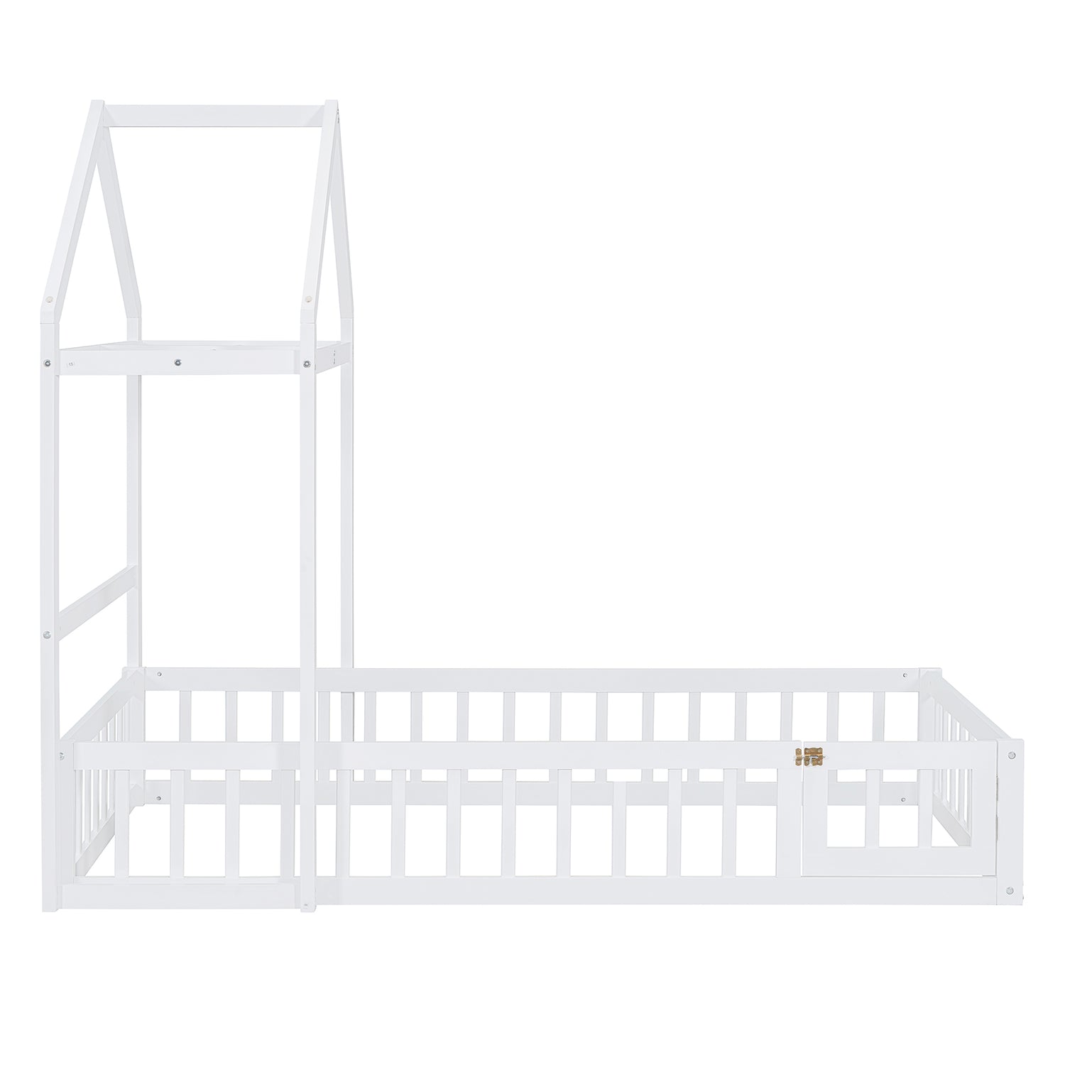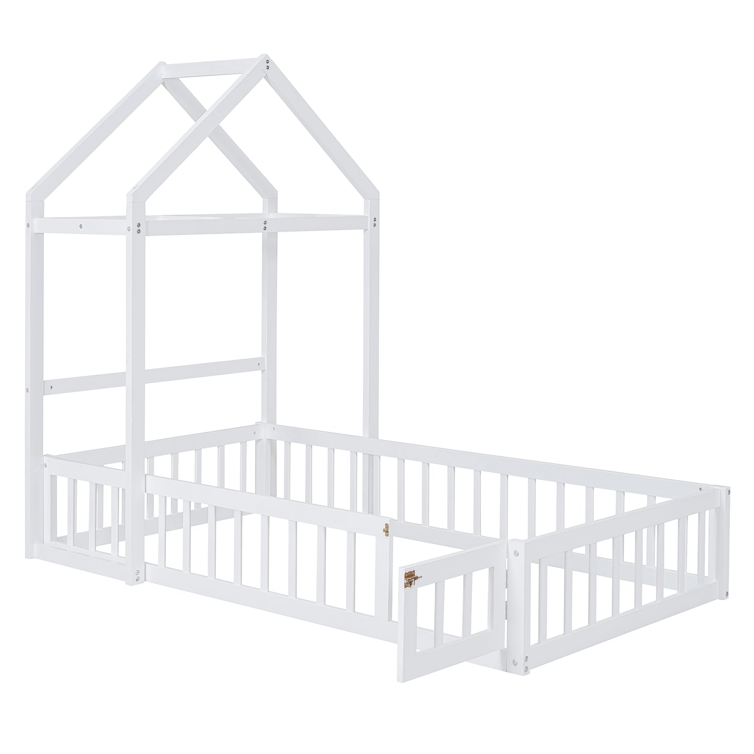 Calidad superior: La cama de la casa está construida con una robusta estructura de madera de pino que mejora su estabilidad y durabilidad. Además, la cerca y el marco del techo proporcionan un soporte firme y cómodo al colocar el colchón en el suelo.