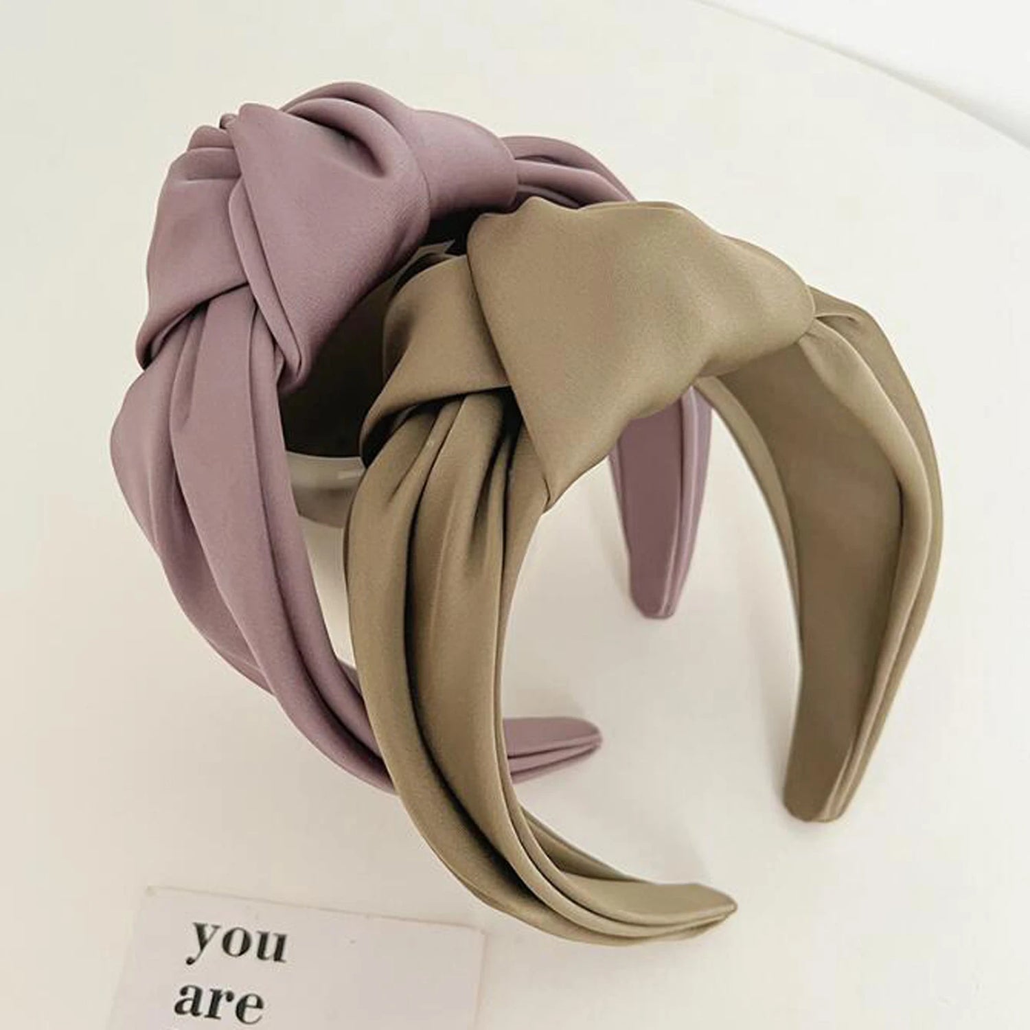 Diadema de tela satinada con borde ancho y nudo de moda