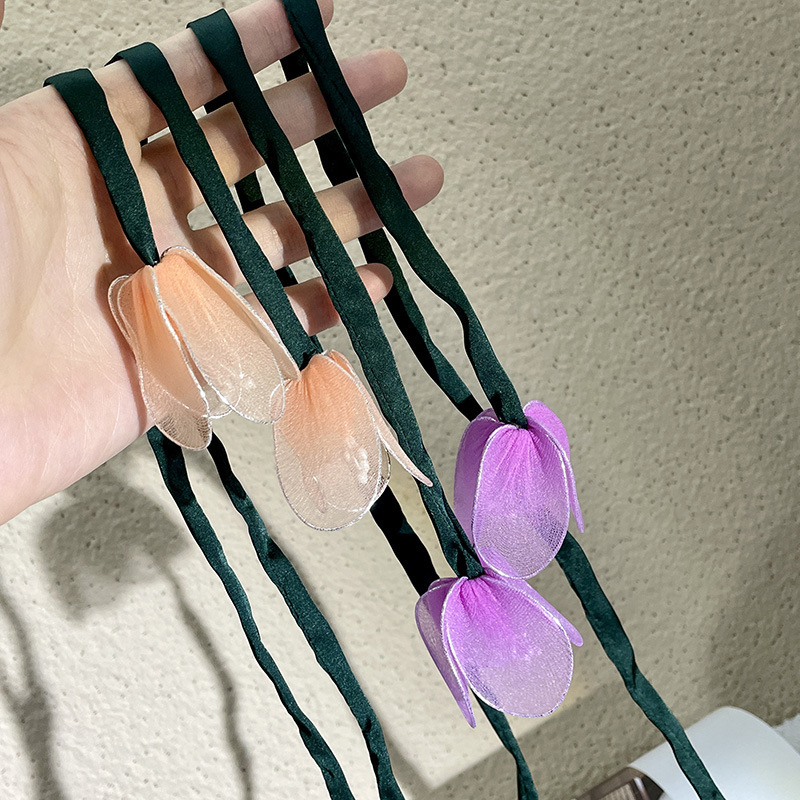 Cinta para el pelo con lazo de tulipán, lazo para el pelo con forma de hada, nudo enredado con flores tridimensionales, cuerda para el pelo