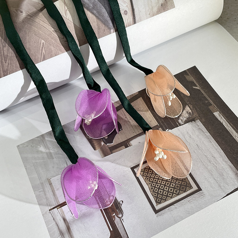 Cinta para el pelo con lazo de tulipán, lazo para el pelo con forma de hada, nudo enredado con flores tridimensionales, cuerda para el pelo - Color rosa de la raíz de loto está agotado y se enviará tan pronto como vuelva a estar disponible.