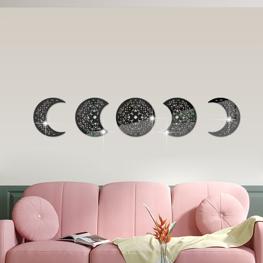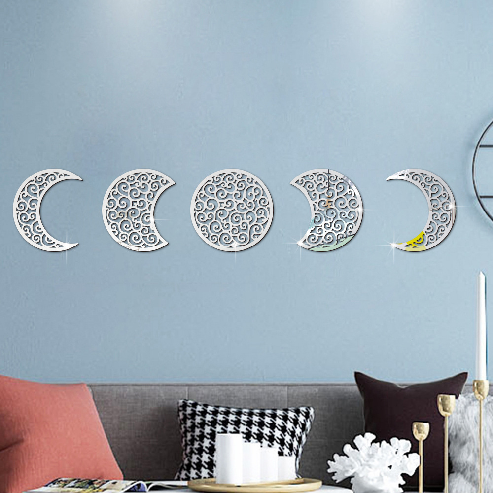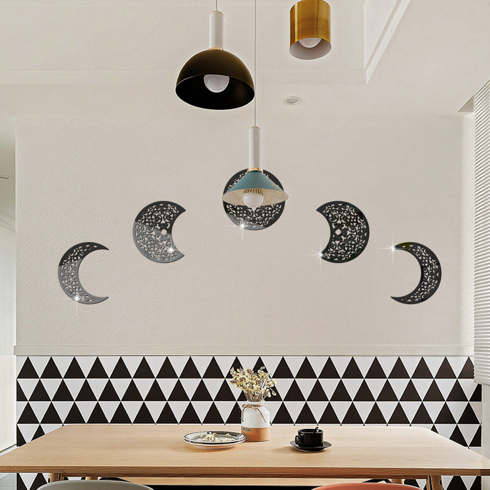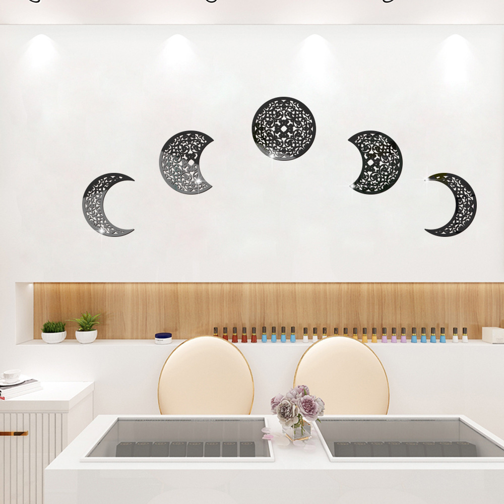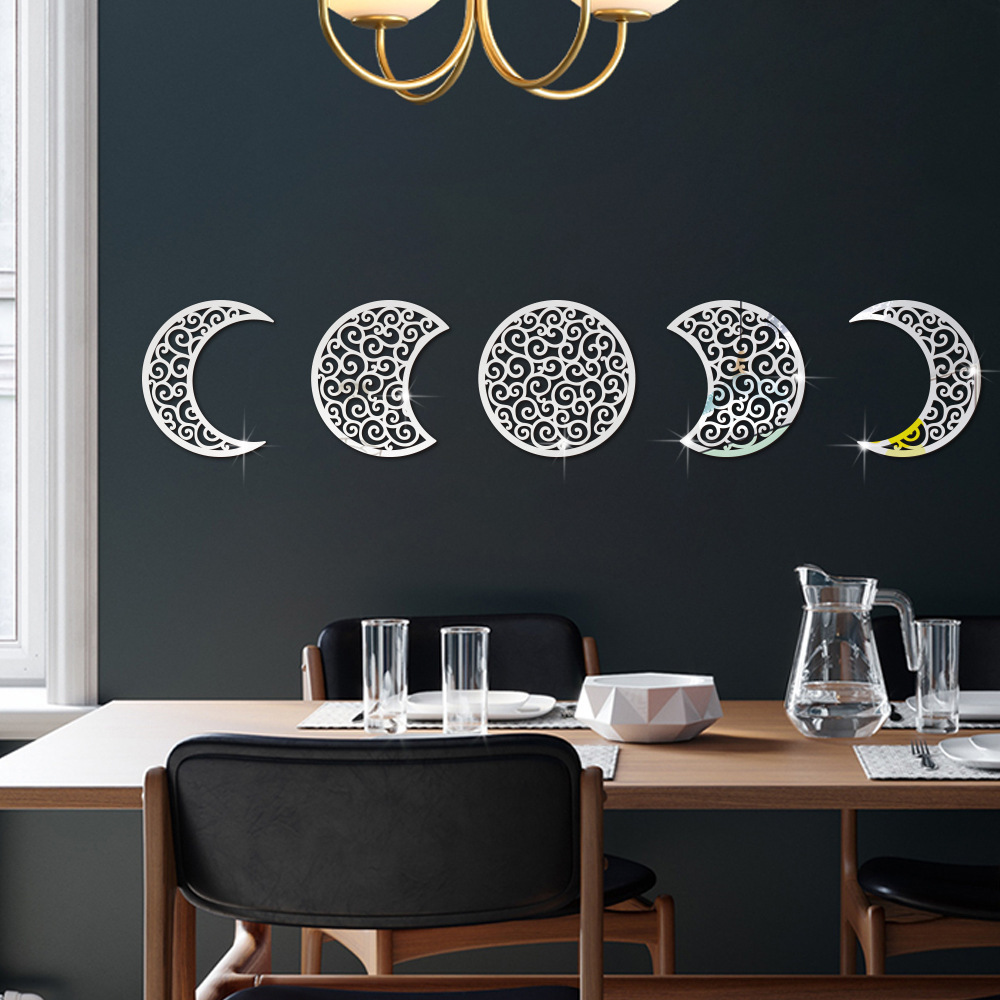 Pegatina de espejo acrílico con cambio de fase lunar estereoscópico 3D para decoración del hogar, autoadhesiva para pared