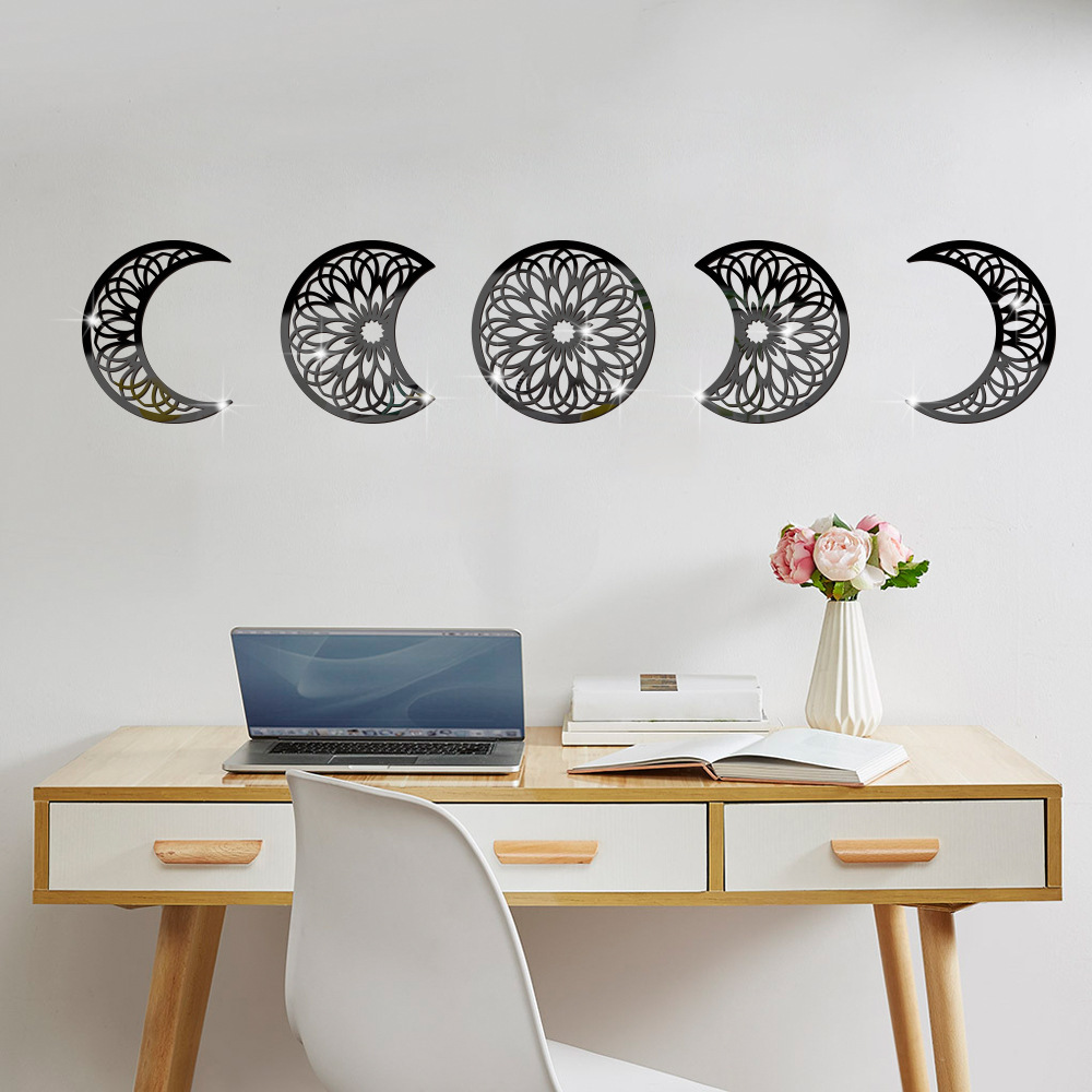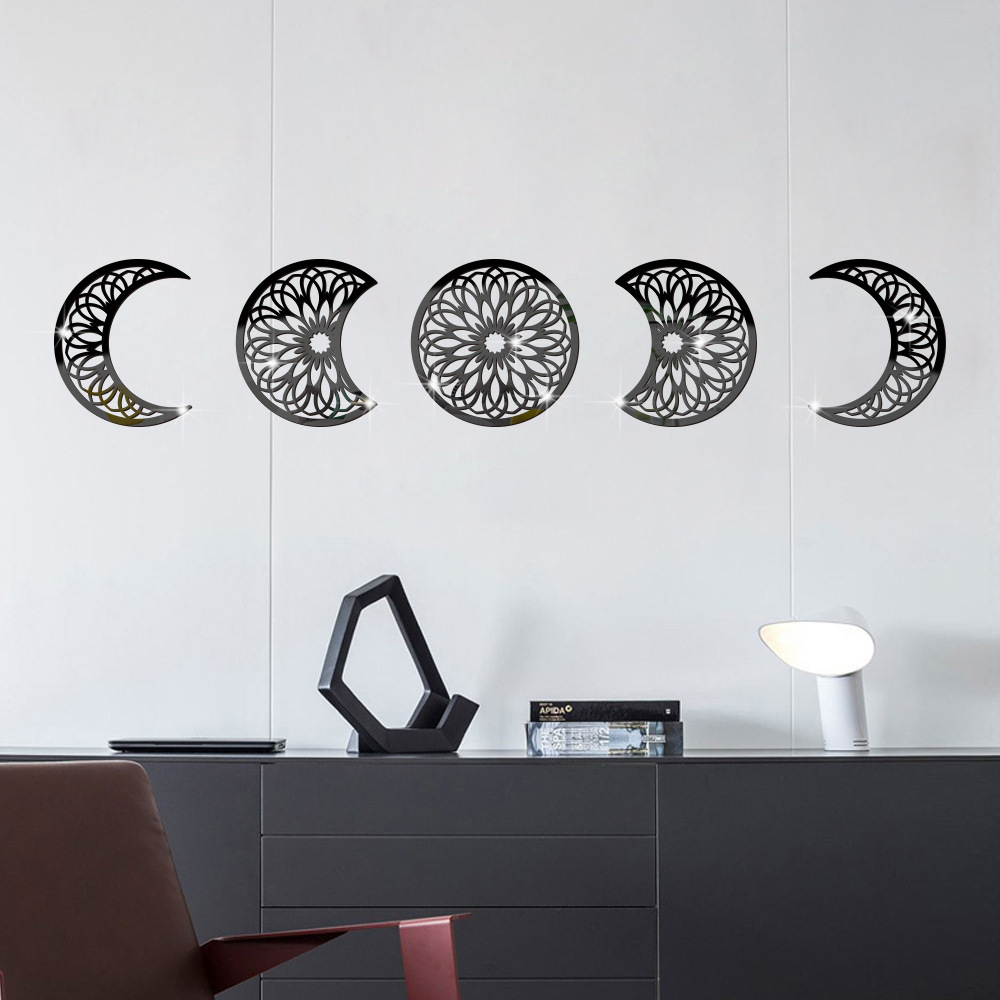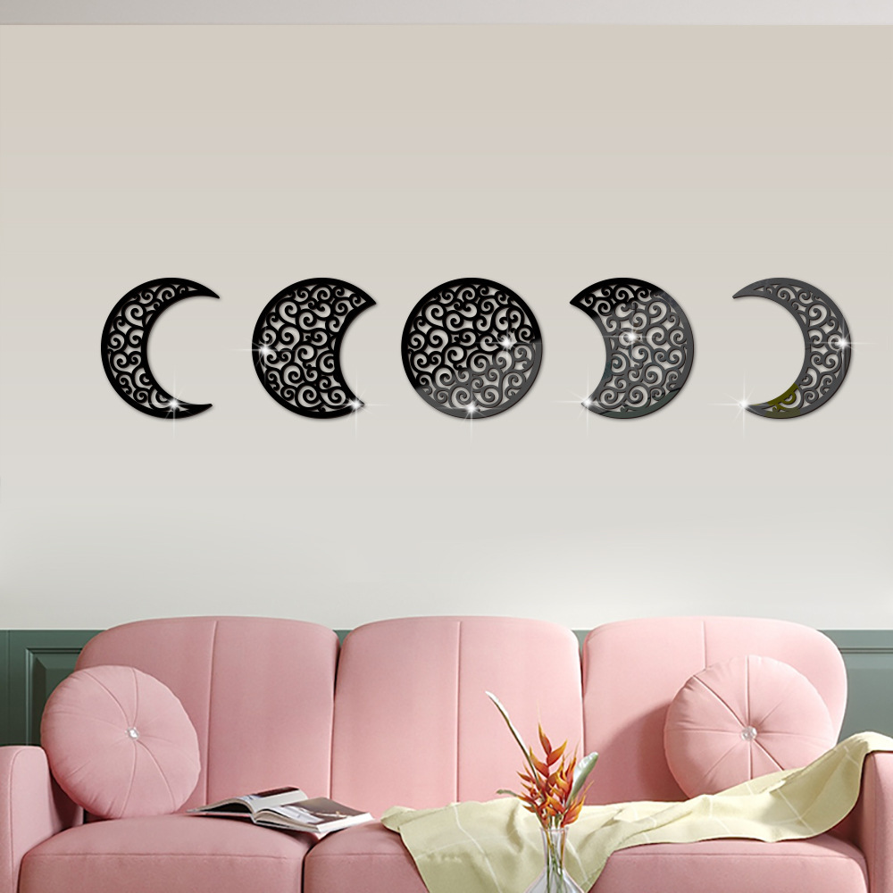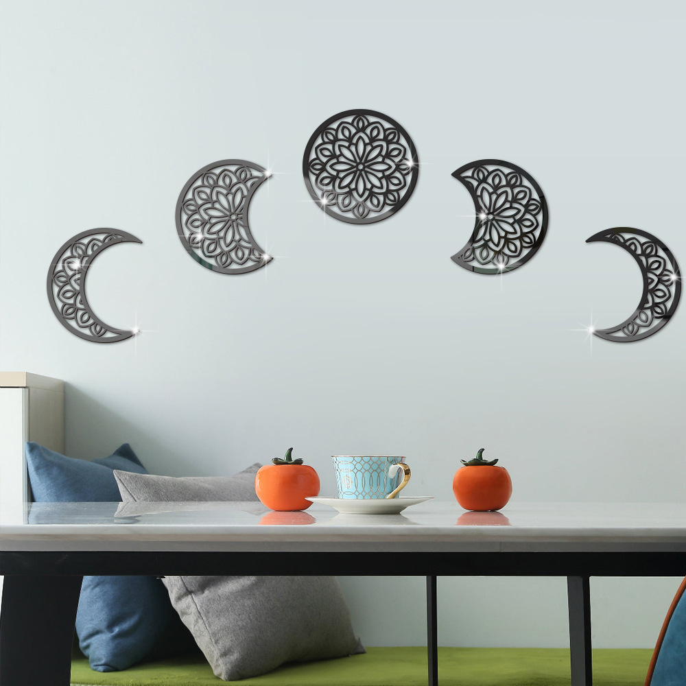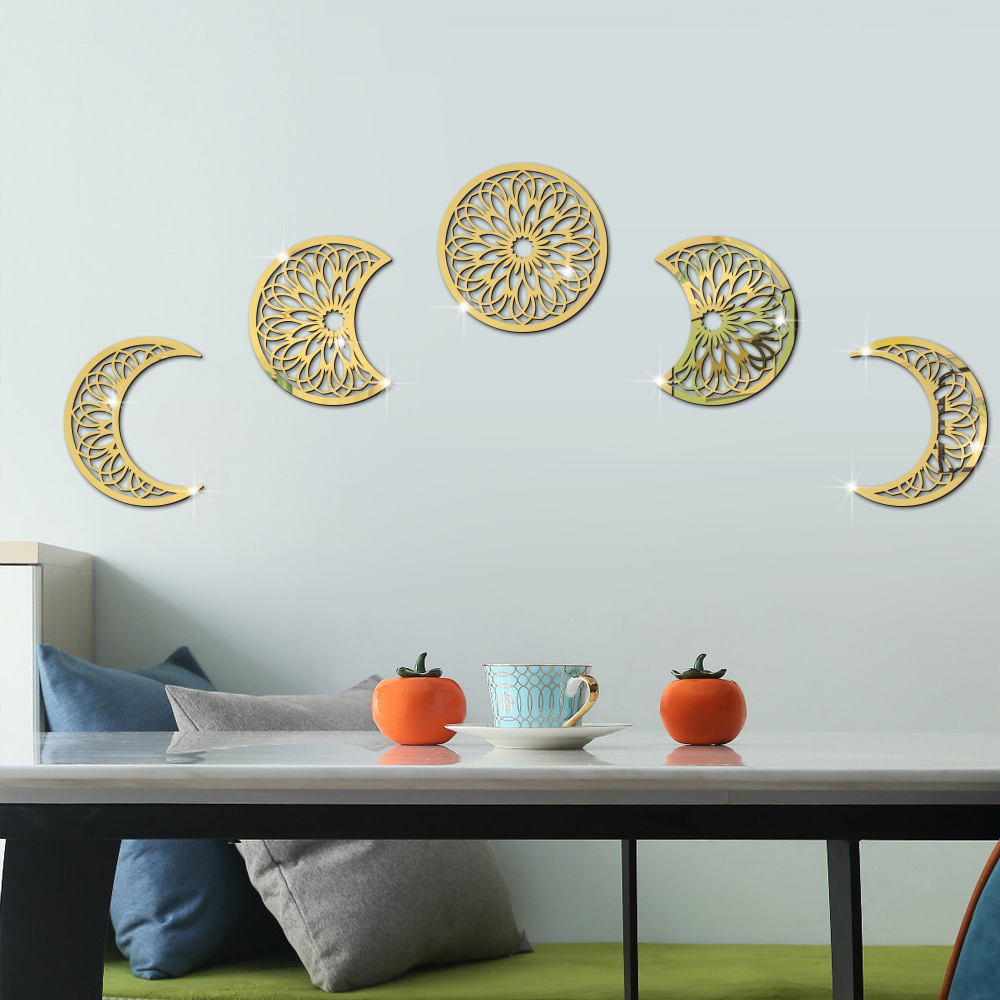 Pegatina de espejo acrílico con cambio de fase lunar estereoscópico 3D para decoración del hogar, autoadhesiva para pared