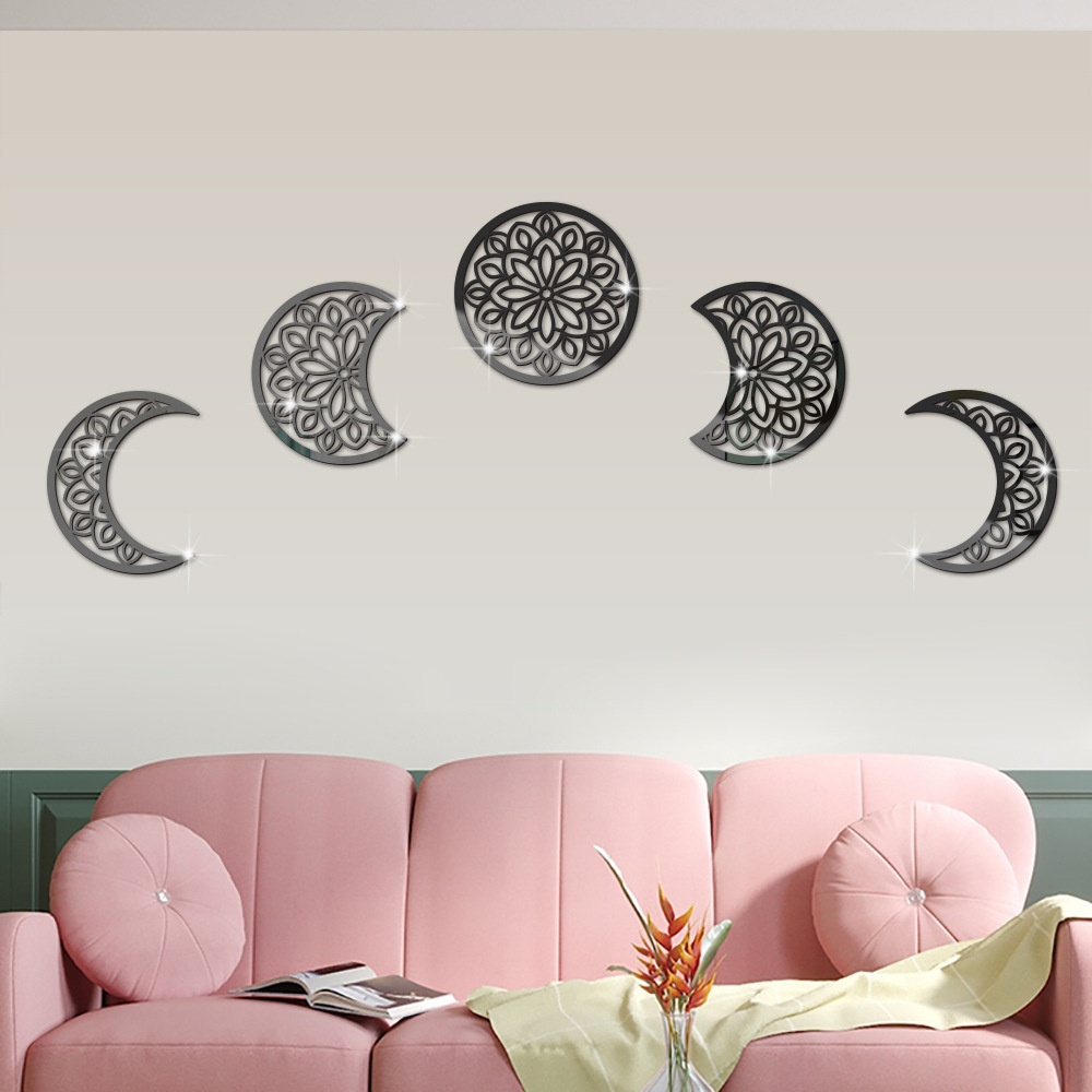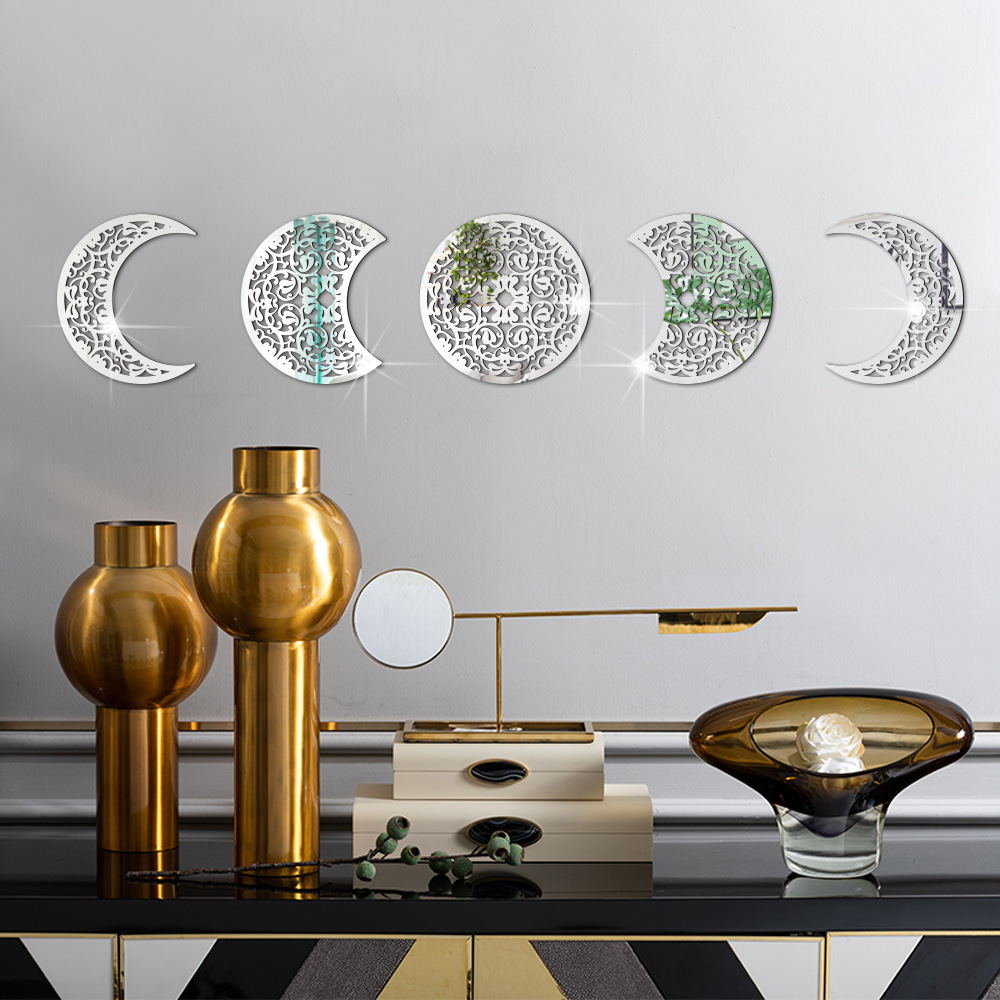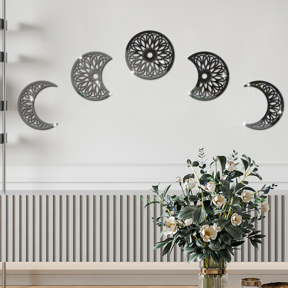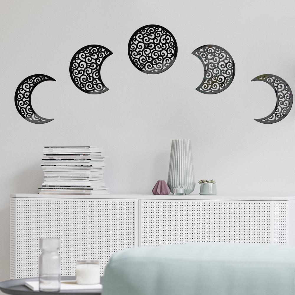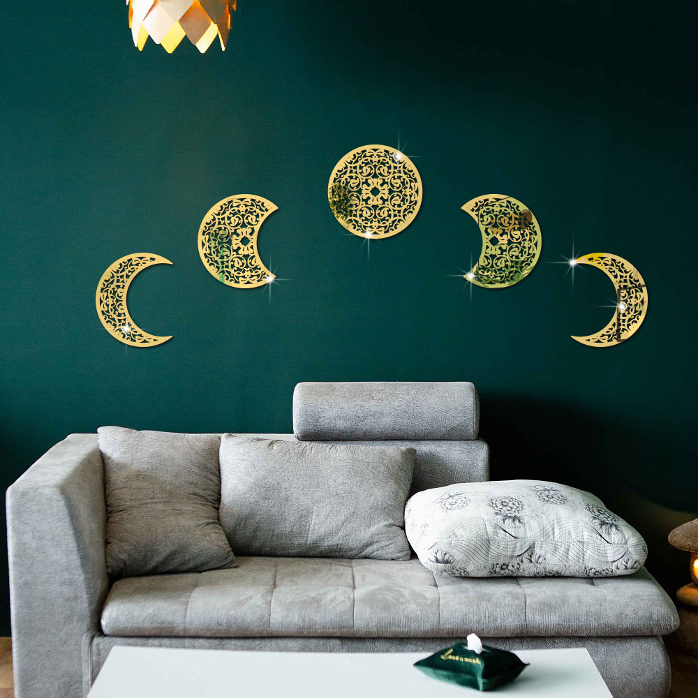 Pegatina de espejo acrílico con cambio de fase lunar estereoscópico 3D para decoración del hogar, autoadhesiva para pared